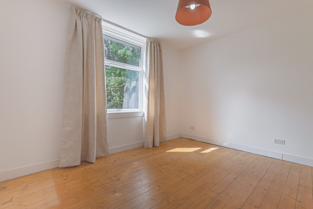 BEDROOM 2 This bright and inviting second ground floor bedroom offers a peaceful rear-facing outlook and benefits from excellent natural light through a large window overlooking the garden. The room is finished in fresh neutral tones with attractive original wooden flooring, making it a comfortable and low-maintenance space. Well-proportioned and versatile, it is ideal as a guest bedroom, child's room, or dedicated home office, depending on your lifestyle needs.
