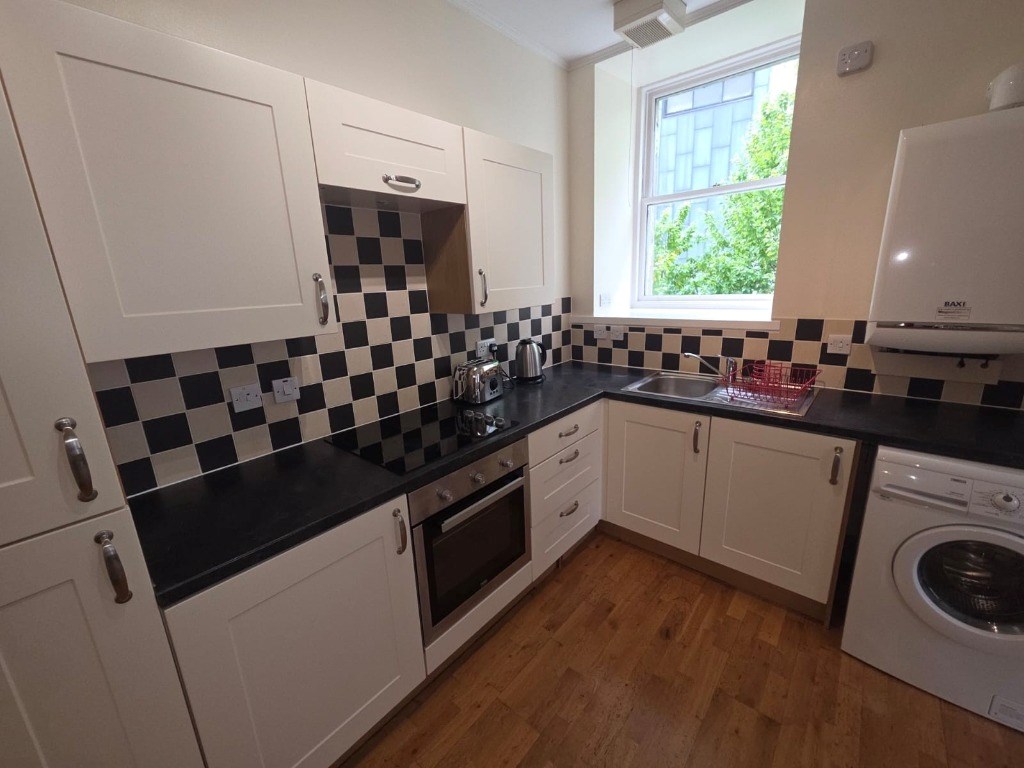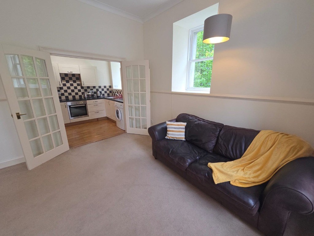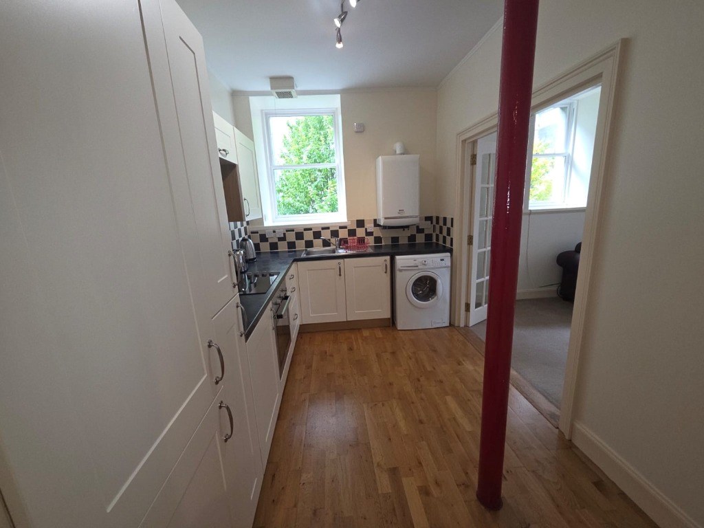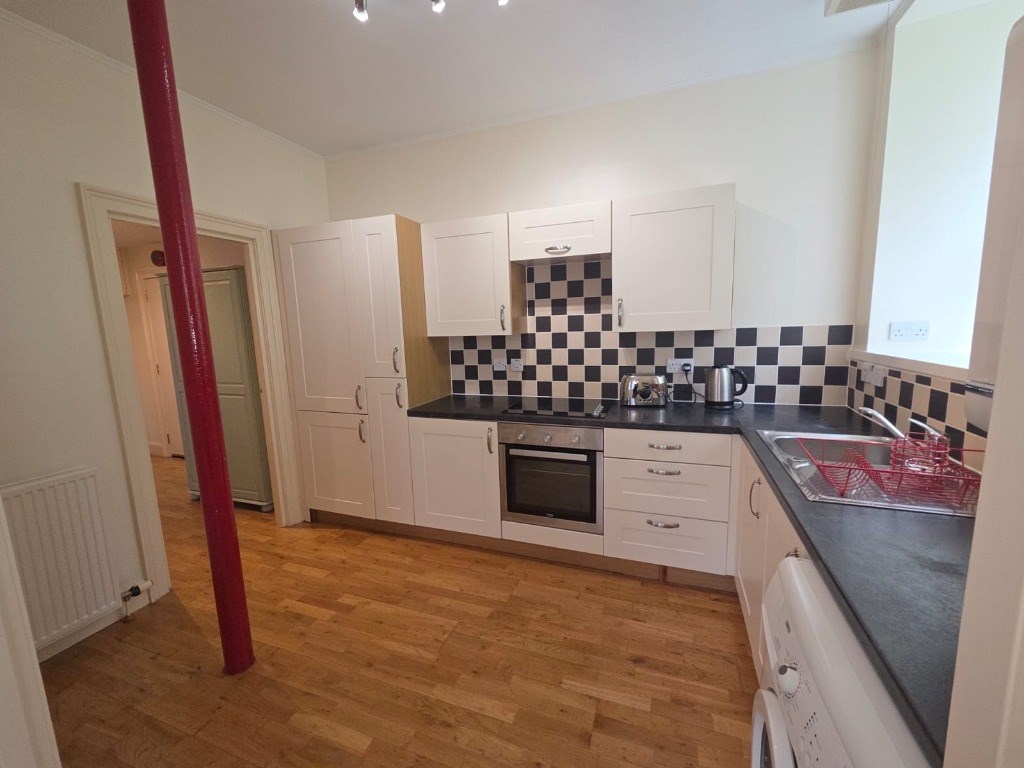 Entry to the property is via the bright and spacious hall. The lounge is large with double aspect windows, with two large leather sofas and provides a warm and welcoming atmosphere. The kitchen is accessed through double doors from the lounge and decorated with white base and wall units, hard wood flooring and black and white splash-back tiles. The kitchen is equipped with the usual appliances, such washing machine, oven and electric hob and large fridge freezer. There are two good sized double bedroom, one with free standing wardrobe and one with a fitted wardrobe. The well presented bathroom has a roll-top bath and separate shower cubicle. Within the building the communal hallways and stairwells are in good order and protected by security entry system.