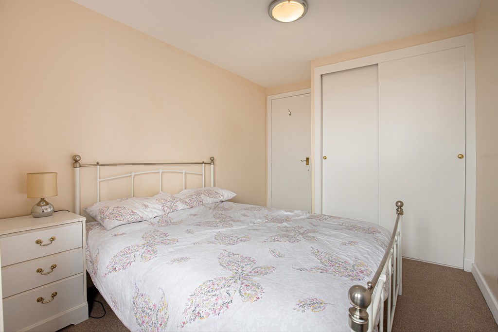 BEDROOM Well-presented double bedroom featuring built-in wardrobes, matching bedside table, and a large double bed. Finished with a beige carpet and neutral wall tones, the room is quietly positioned to the rear of the property, offering a peaceful and relaxing space.
