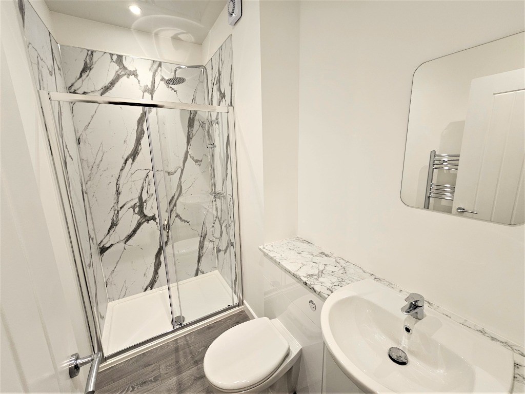 Spacious Kitchen/ Linving room with 2 storage cupboards, Integrated fridge freezer and washing machine: Modern shower room with rainfall shower: Large double bedroom with 2 further storage cupboards.