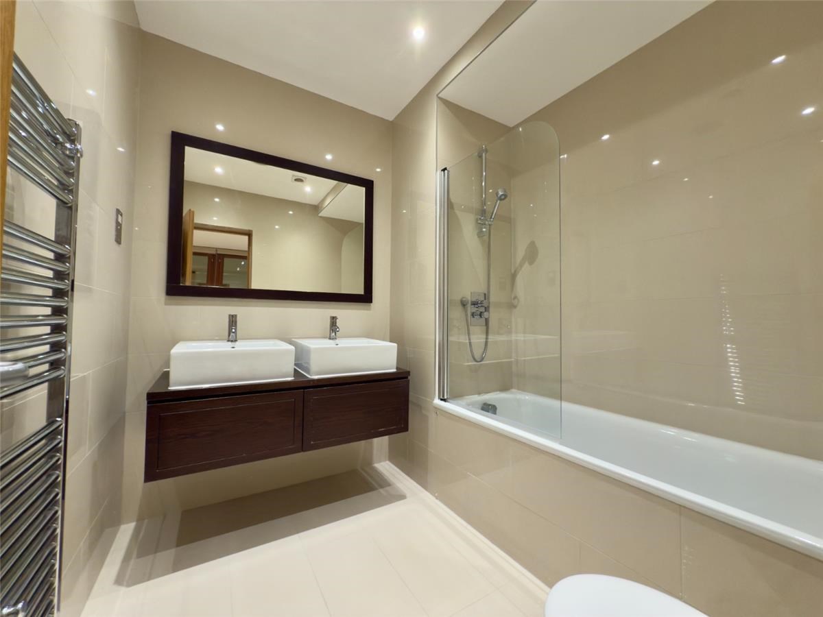 Two spacious double bedrooms with master bedroom having spacious fitted wardrobes and en-suite bathroom with heated towel rail and shower over the bath and additional shower room with sink and wc.