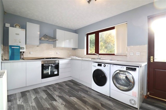 The well-appointed kitchen comes complete with appliances including a gas hob, oven, washing machine, tumble dryer, fridge freezer, and extractor fan, with a stylish newly tiled splash-back. A modern downstairs bathroom with a three-piece suite and shower-over-bath adds convenience.