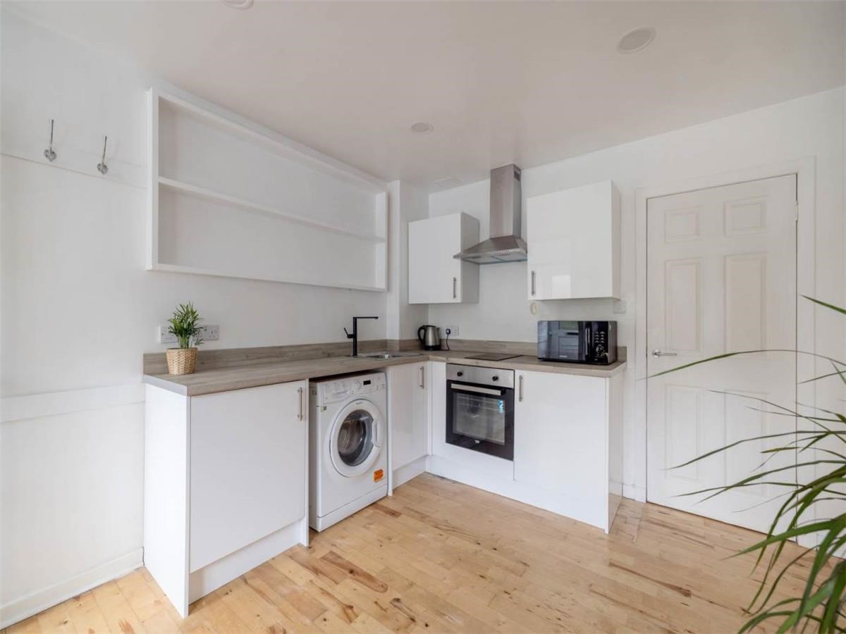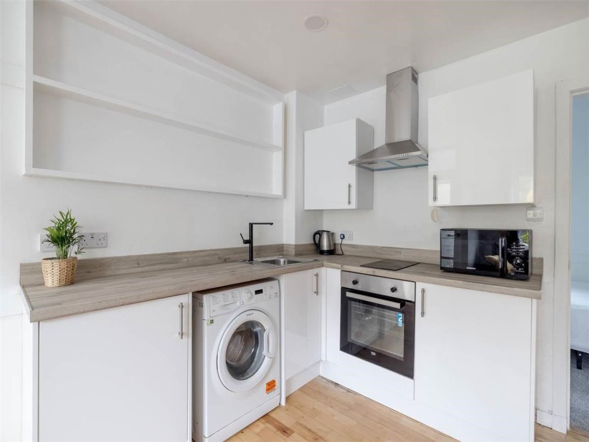 The well located and furnished one bedroom flat is in great order. The accommodation comprises: entrance vestibule, open plan kitchen/living room with dining area (new dining table & chairs to follow). A spacious double bedroom and shower-room to the rear of the building.