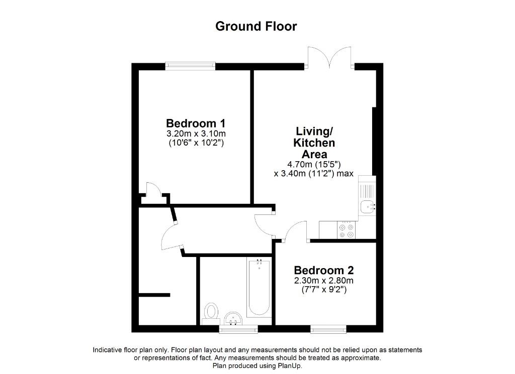 The property comprises entrance hallway with utility cupboard, master double bedroom, small single bedroom and family bathroom complete with three piece suite and over-head shower. The open plan living room and kitchen benefits from natural light and patio doors leading out on to a small veranda at the front of the property. The washing machine and fridge/freezer are in the utility cupboard.