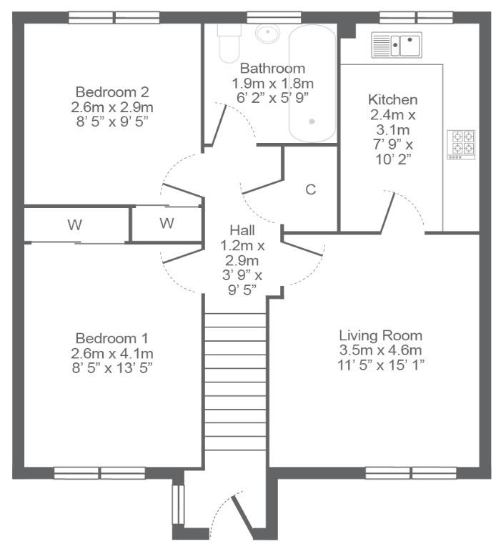 A very well presented modern two bedroom unfurnished upper cottage flat located in a quiet cul-de-sac in Clydebank, Glasgow.