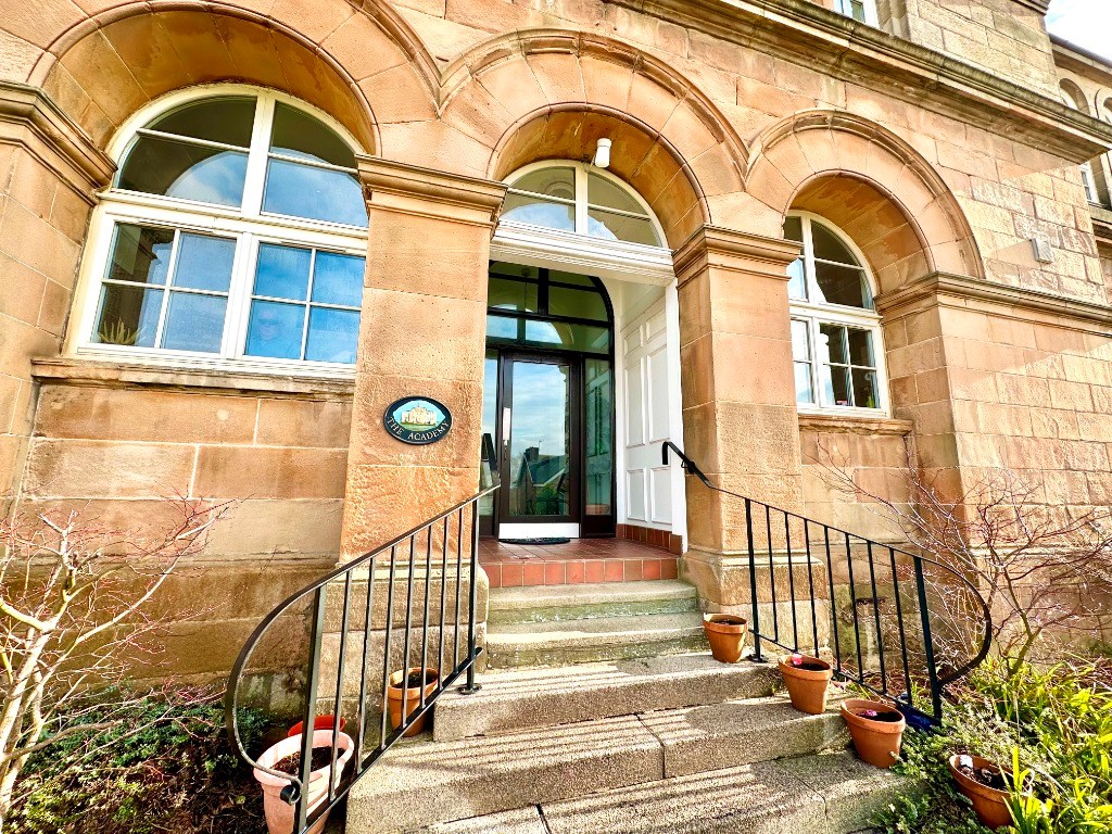 Located within the former Gartsherrie Academy built in 1845, this unique property is one of 11 flats within this beautiful converted building set in its own grounds with private gardens and car park. The building is entered into via a secure entry system into a lovely, bright hallway which then leads to a very large atrium which gives access to flat number 6. Internally the property consists of a hallway which has three steps at the entry and has a large storage cupboard off, generously sized living room with dining area with large windows which look out to the well kept mature gardens to the side and rear of the building, fully fitted kitchen complete with appliances including gas hob, electric oven, fridge freezer, washing machine and dish washer, two double sized bedrooms, one having a large storage cupboard and an en-suite shower room with shower, wc and sink and the other bedroom has fitted wardrobes. Finally there is a modern fully tiled shower room with white ceramics, wc, sink and a double width walk-in shower cubicle.