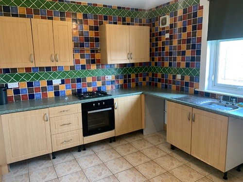 Kitchen-Modern fitted kitchen with plenty of worktop and storage space. Brightly decorated and with plenty of natural light for entertaining. No white goods included.