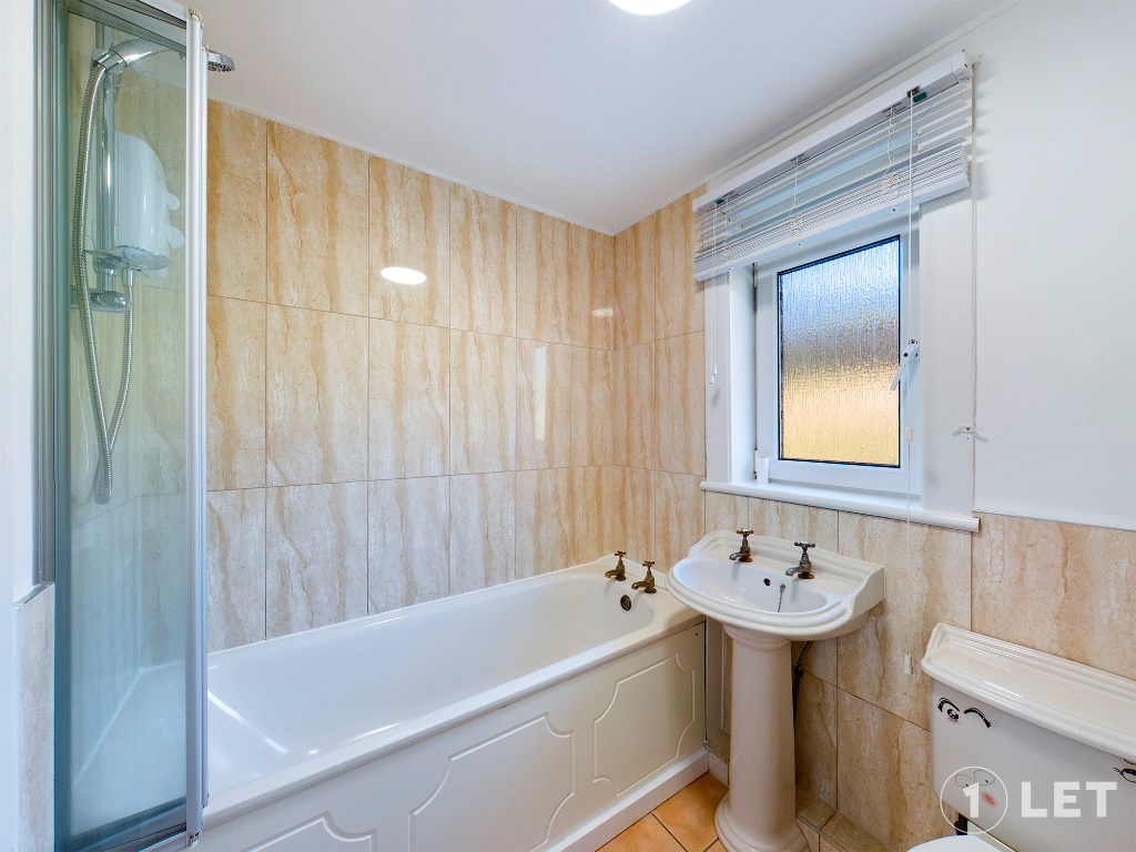 Upstairs, the property offers three well-proportioned bedrooms, comprising two generous double rooms and a single bedroom that would also make an excellent home office or nursery. The family bathroom is fitted with a full-sized bath and overhead shower.