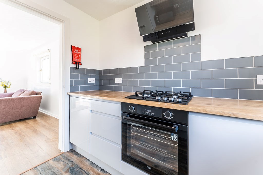 ~Modern and well-equipped kitchen, off lounge, with selection of appliances and tiled splashback