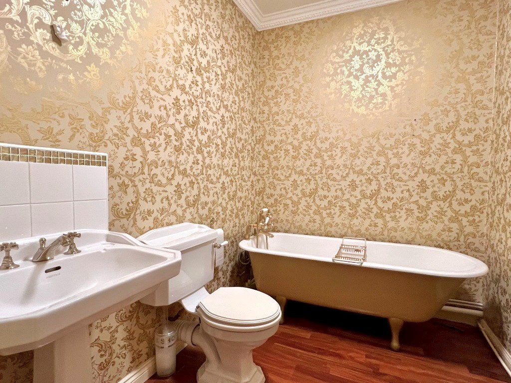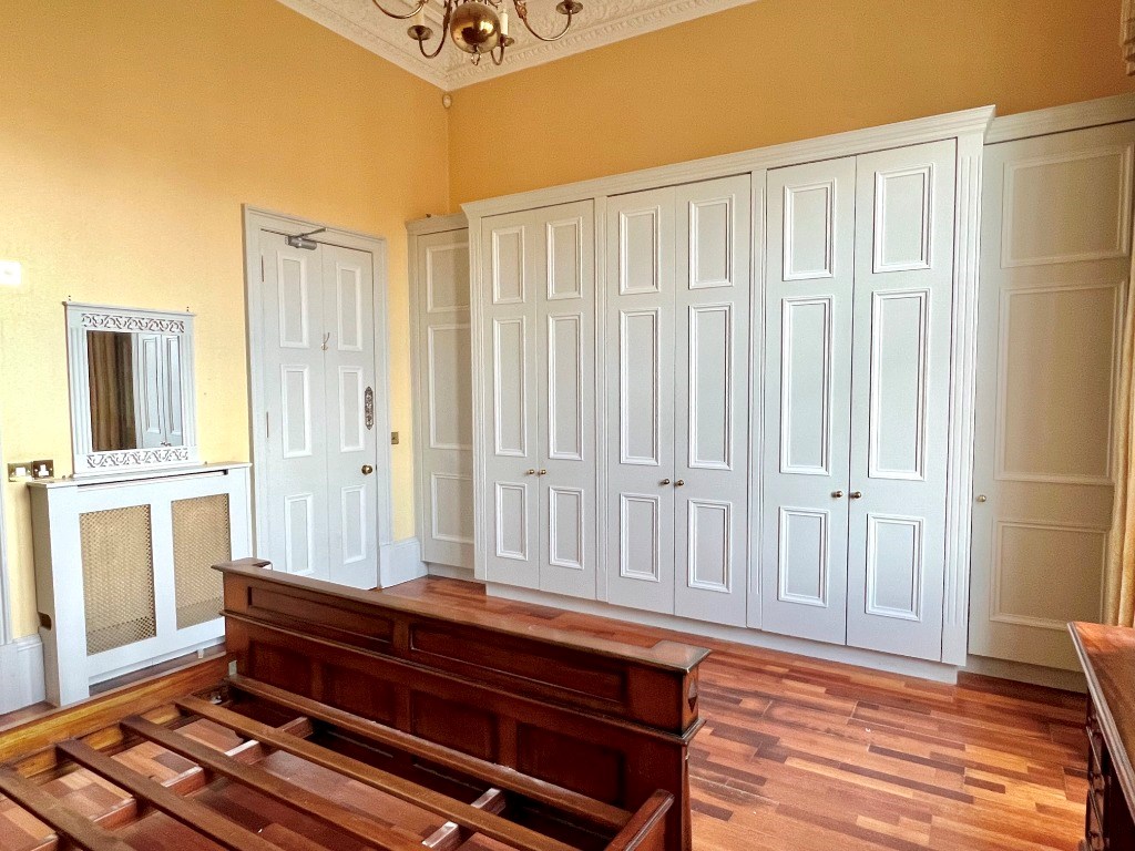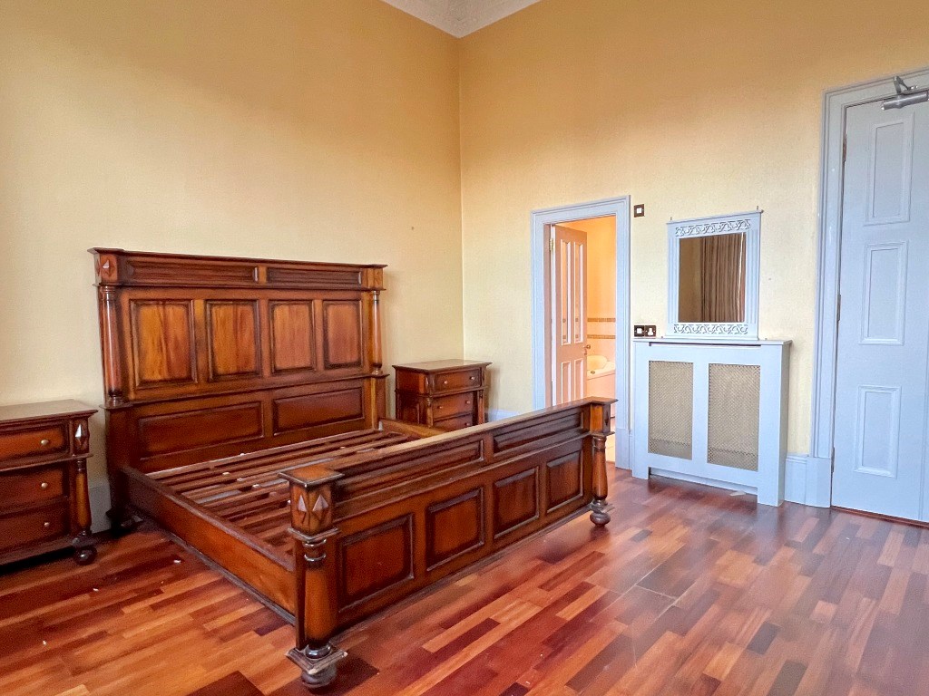 Also off the hallway is the main bathroom with roll top bathtub with shower hand set. There is a small coat cupboard before the large main bedroom with fitted wardrobes and an en-suite bathroom with jacuzzi bath and hand shower. The second bedroom is quietly to the rear of the property accessed by a small stairway.
