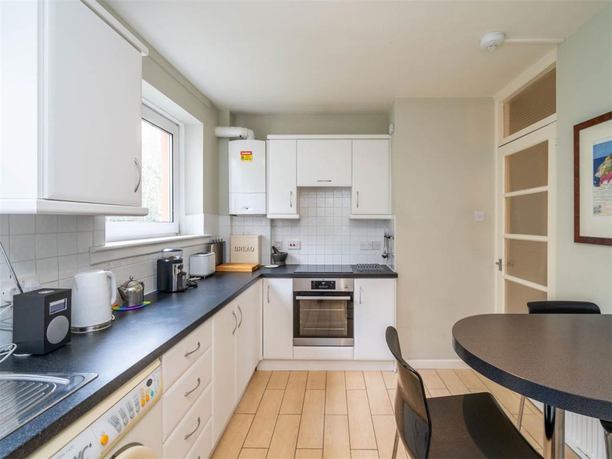The bright and spacious first floor property enjoys nice views from the front and rear of the property. Upon entering the property, you are welcomed into a large hallway with storage cupboards and leading to the living room with a separate dining room off it. There is a south facing balcony off the living room. The kitchen with a breakfast bar sits to the rear of the building with integrated appliances, including a dishwasher.