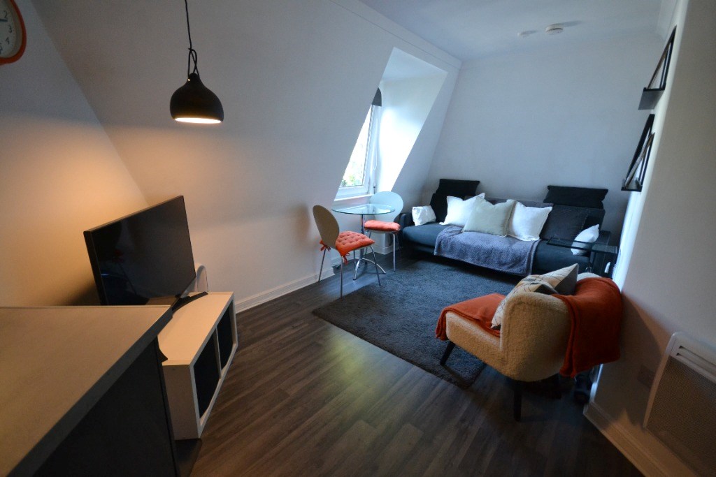 The property offers a open plan kitchen and living space, one double bedroom, and a contemporary bathroom.