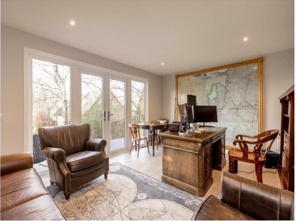 There is an additional room on the ground floor that can be used as a living room, games room, play room or home office. The room is a good size and has hardwood flooring throughout. There is a good sized storage cupboard under the stairs in the hallway and two Edinburgh press's