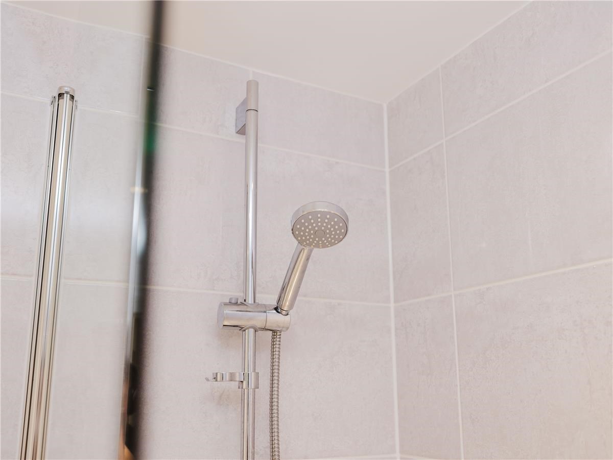 ~Beautiful bathroom suite with mains shower over bath and tiled splashback