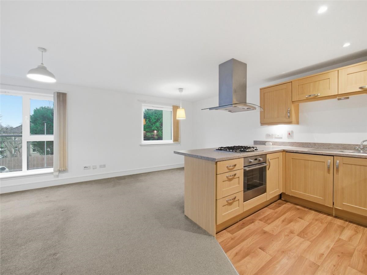 Situated in a quiet development on the edge of the Carricknowe Golf course, this smart, 1st floor apartment comprises open planned living room with kitchen and breakfast bar, two double bedrooms(one with ensuite), and a bathroom with shower over bath. The property has parking available for residents and boast a southerly view over the golf course. NO PETS.