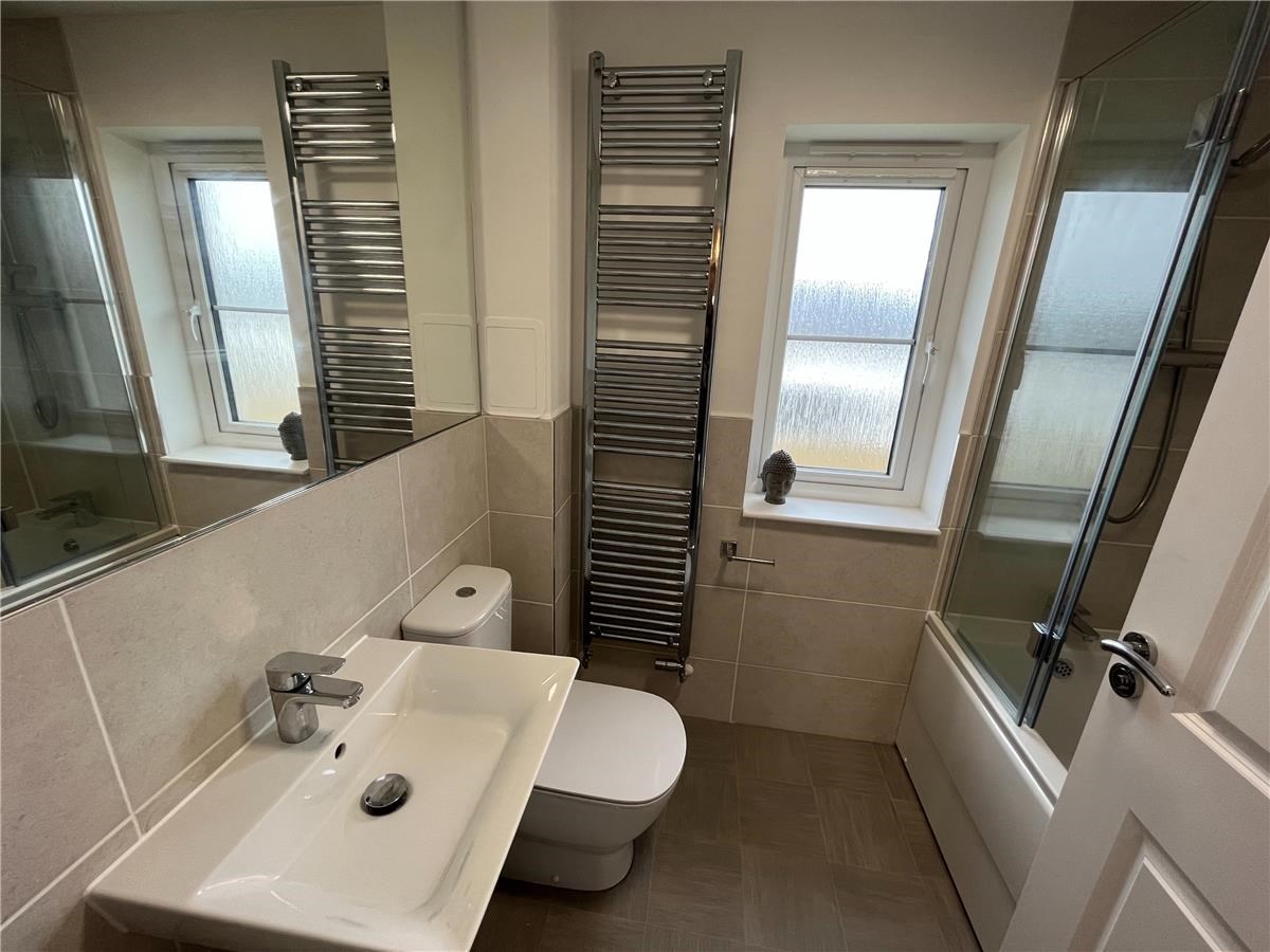 Upstairs there are four double sized bedrooms, one was being used as an office space and one contains a single bed. Two of the bedrooms have ensuite shower cubicles. The family bathroom has a mains shower over the bath.