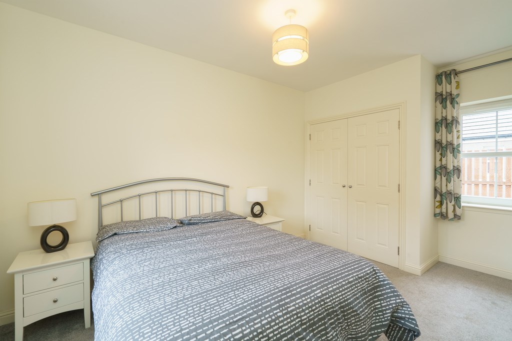BEDROOM 1 Beautiful large bedroom with a large window overlooking the front of the development. Double integrated wardrobes provide an excellent range of storage facilities. This room is complete with a double bed, two bedside table and neutral décor.