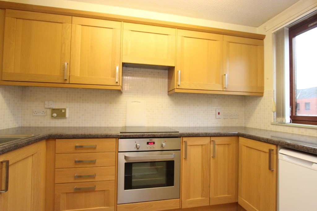 The building is entered via secure entry system into a well looked after communal hallway with carpeted walkways and lift access. Internally the property is entered into a reception hallway with built-in storage cupboard which gives access to all rooms. There is a recently refitted kitchen with integrated electric oven and hob with overhead extractor hood, freestanding fridge and washing machine. The double sized bedroom has a built-in wardrobe and finally the bathroom has white ceramics with an electric shower over the bath. The kitchen and bathroom both have windows and therefore natural light and ventilation.
