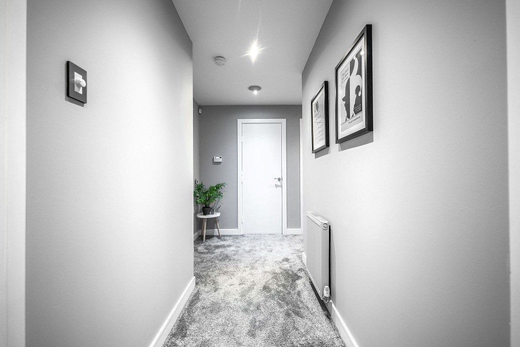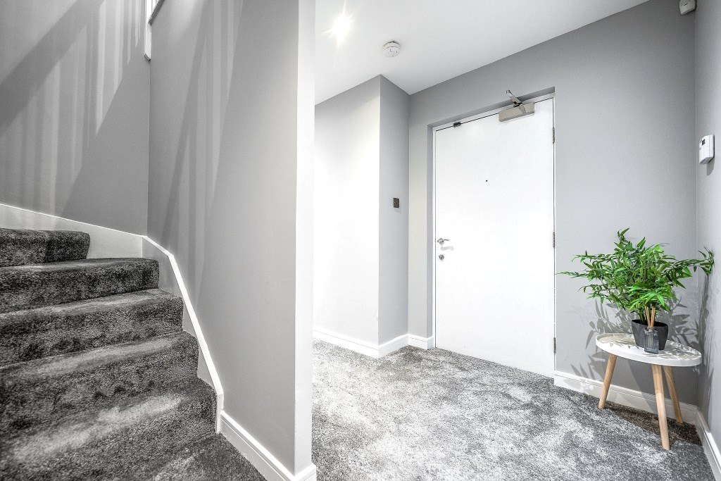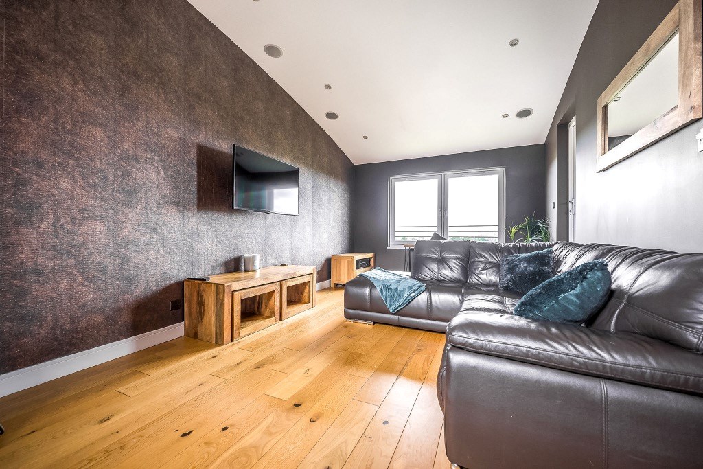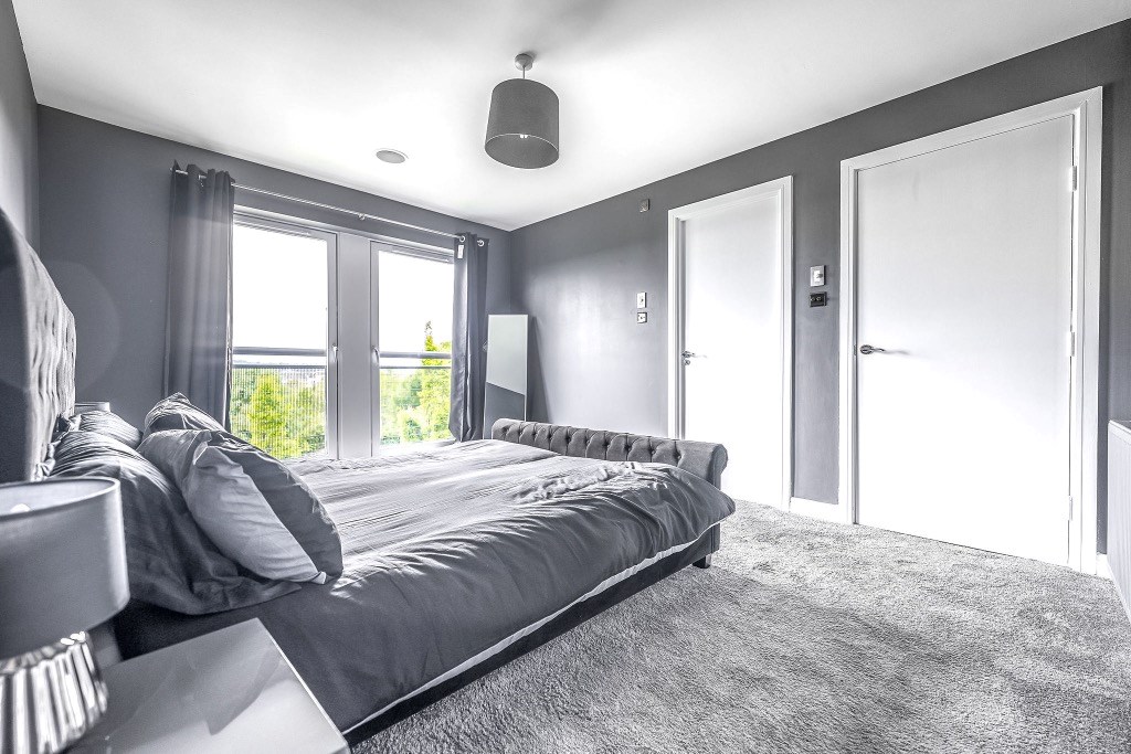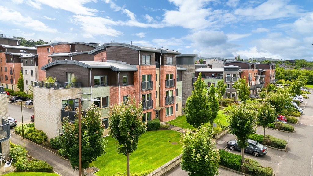 The accommodation on the third floor comprises; generous, dual aspect living room with direct access to the balcony, separate, spacious kitchen with space for a dining table and chairs, W.C and large store cupboard. There are two well-proportioned double bedrooms on the second floor, both with en-suites and principal bedroom with fantastic walk-in wardrobe. There is an allocated parking space in the residents’ carpark and there is direct access from neatly landscaped communal grounds to the Union Canal Pathway offering tranquillity for those who enjoy the outdoors. The property is fully double glazed and has gas central heating.