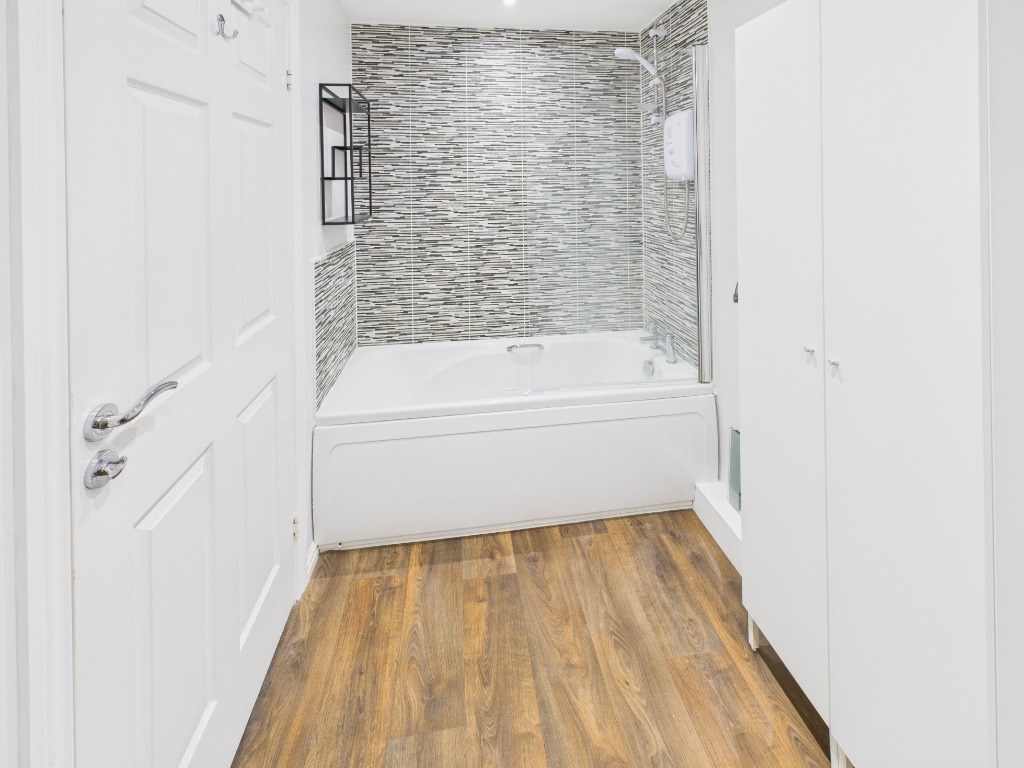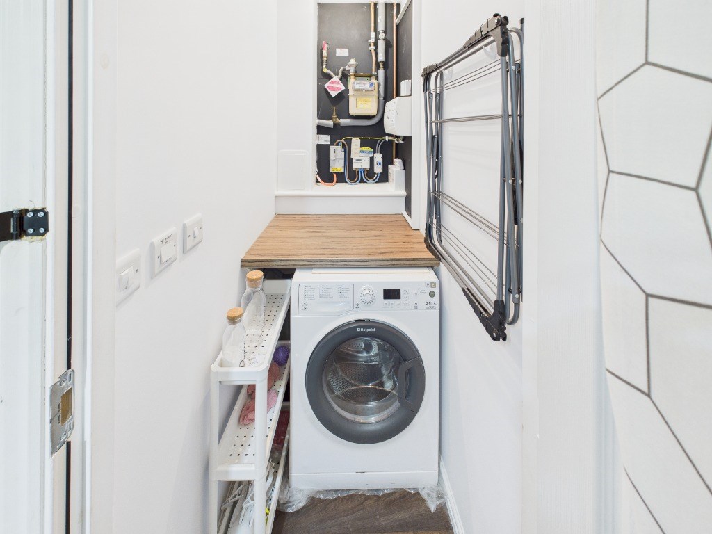 This property features a bright open-plan kitchen-living space, a small utility room with washer-drier; a double bedroom with built in wardrobe and a spacious bathroom with shower over bath. Hallway features an additional storage cupboard too, offering ample storage space.