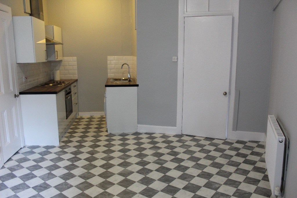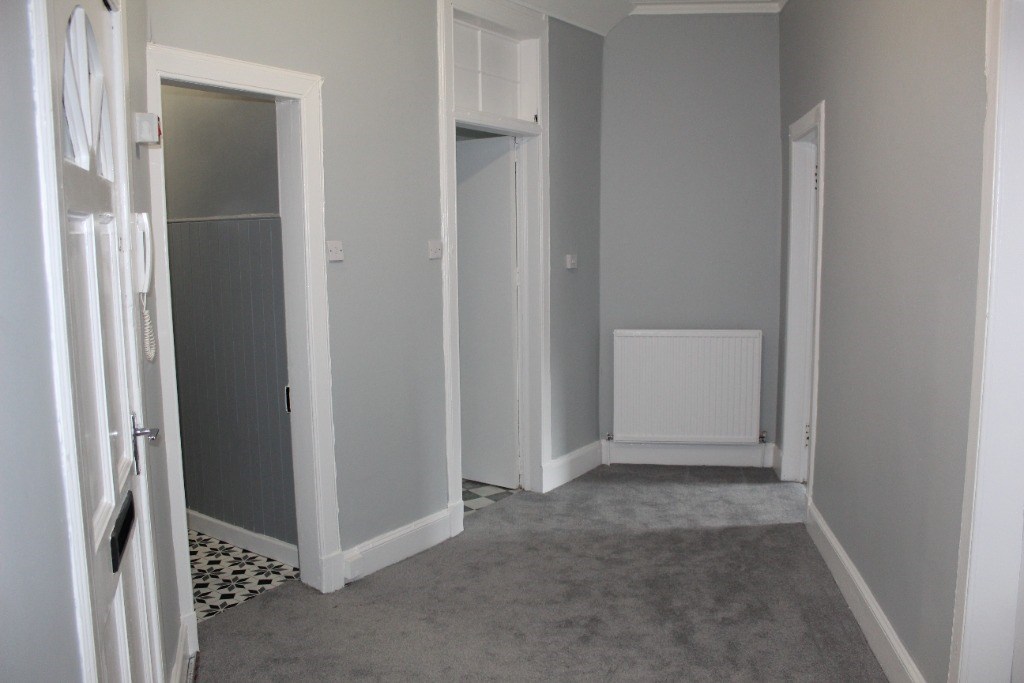 Set on the first floor of a traditional sandstone property, this bright flat has lots of space and has been refurbished with new carpets/flooring, blinds and decoration throughout. Accommodation comprises: reception hall, large lounge, modern dining kitchen with gas hob, electric oven and washing machine, 2 double bedroom and bathroom with electric shower.