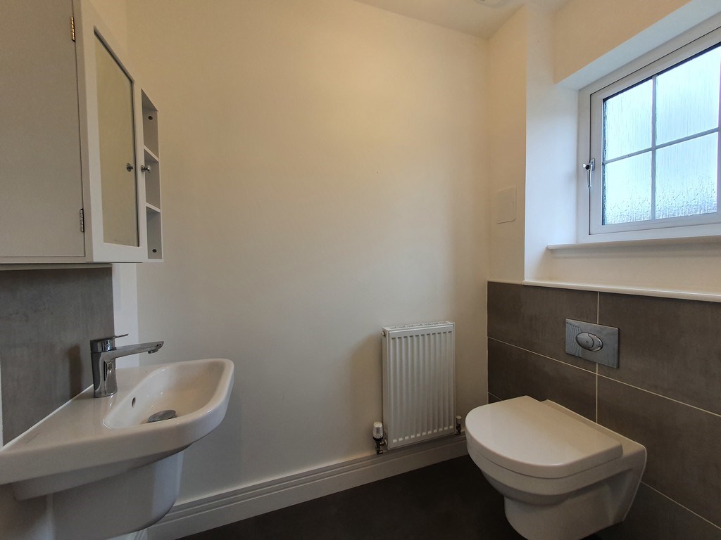 BATHROOM Family bathroom with shower over bath. Modern décor and a good sized window.