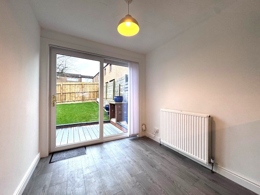 The impressive reception hallway sets the tone, offering a bright and welcoming entrance that flows seamlessly into the stunning open?plan living area. Large rear?facing windows flood the space with natural light, highlighting the fresh décor and immaculate new flooring throughout. The heart of the home is the exceptional, newly installed high?spec kitchen—designed with both style and practicality in mind. Featuring premium finishes, generous worktop space, integrated appliances, and a dedicated dining area, it’s the perfect setting for everyday living or entertaining. Patio doors open directly onto the private, fully enclosed rear garden, creating a wonderful indoor?outdoor connection ideal for relaxing or hosting.