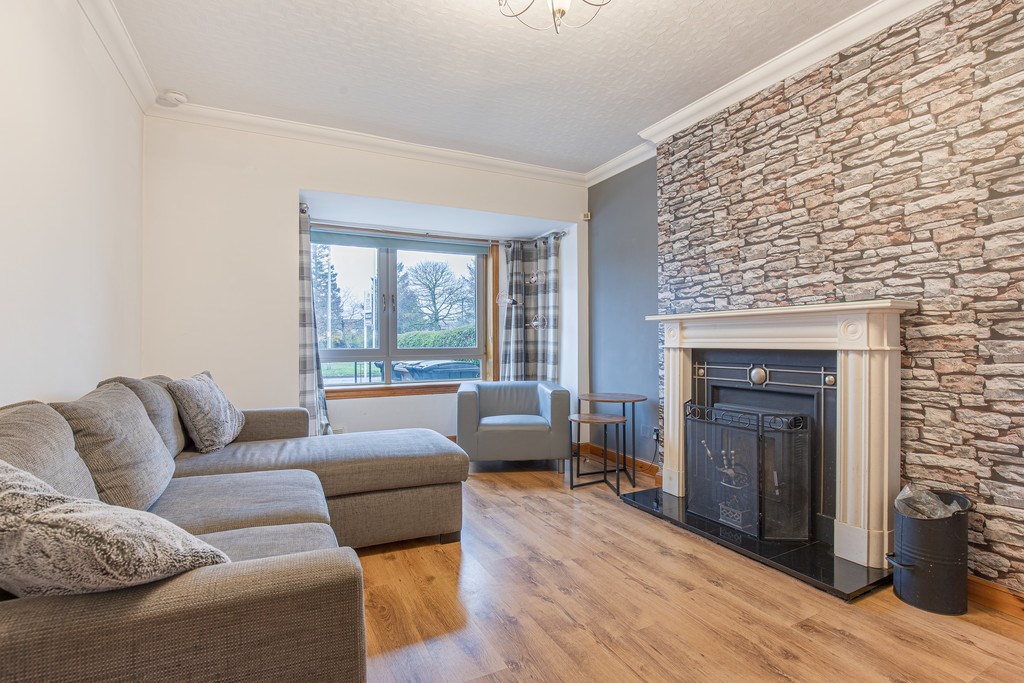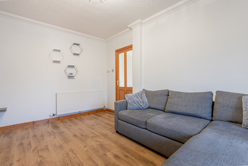 LIVING ROOM The living room for this property is a well sized space to cosy up inside during any season of the year, complete with cosy fireplace and large front facing windows that shed plenty of light into the room. The room features a large L shape sofa and makes for a great reception space featuring a sleek wood panel floor and conveniently placed corner wall mount for watching all of your favourite shows on TV in comfort.