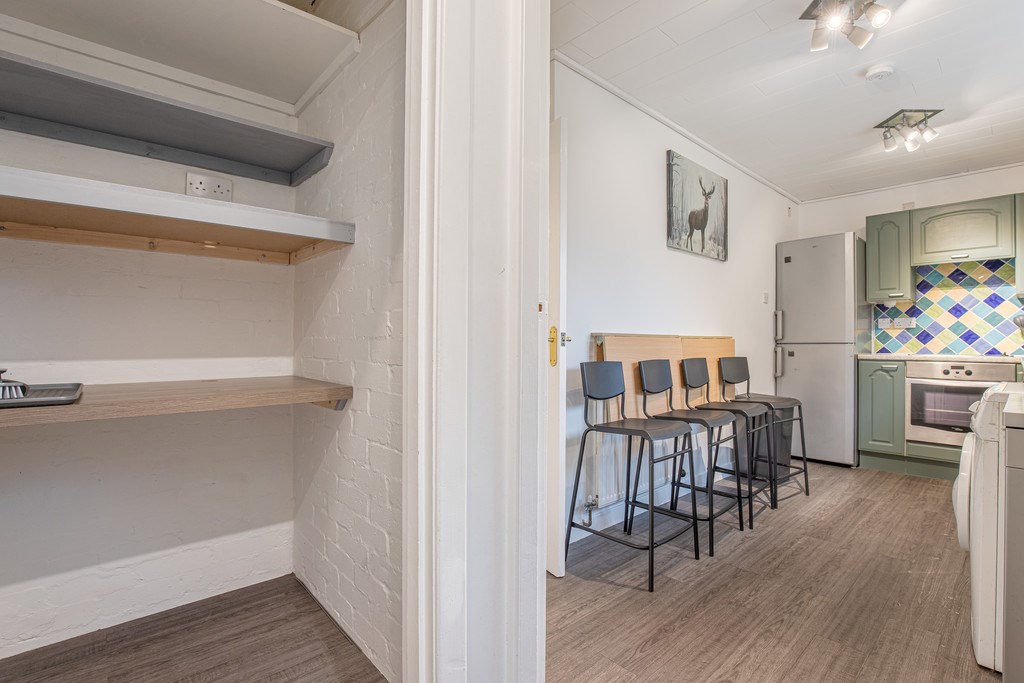 KITCHEN/DINER The kitchen for this property greets you with a sleek tiled design using bright colours to spruce up your cooking and food preparation area. With a fridge freezer, dishwasher, washing machine, oven cooker and fold out diner, this kitchen gives you all the tools you need to cook and enjoy your favourite meals at any time. The kitchen features a walk-in storage cupboard and also access to the back garden - which features a spacious environment and storage shed including a lawnmower.