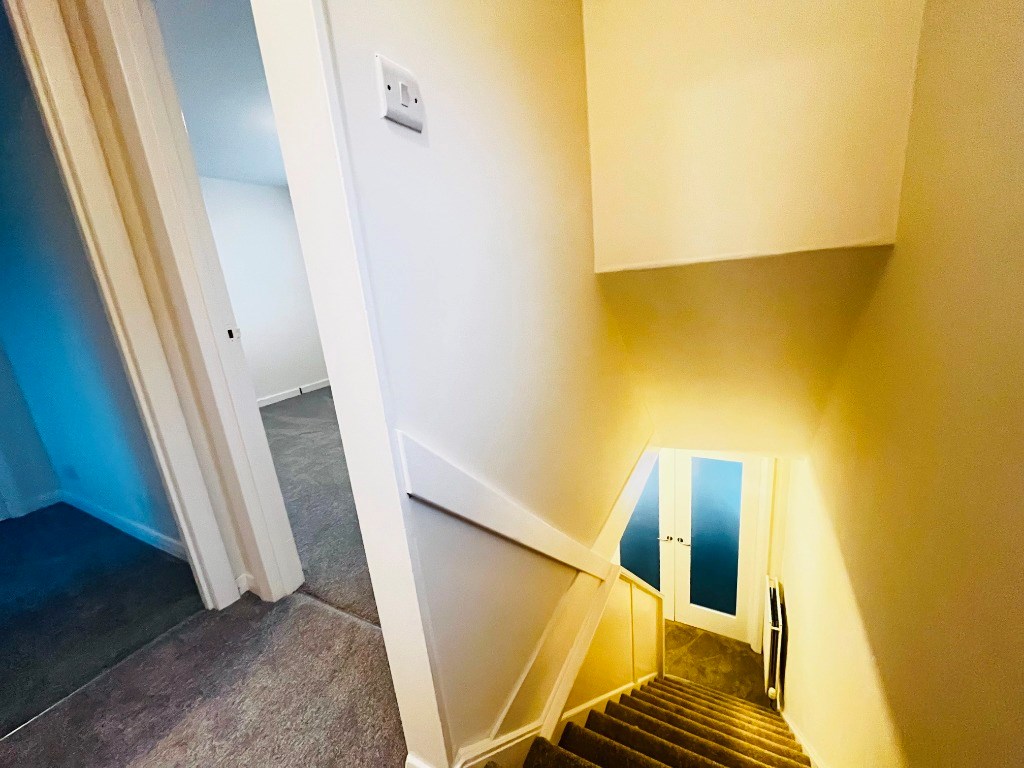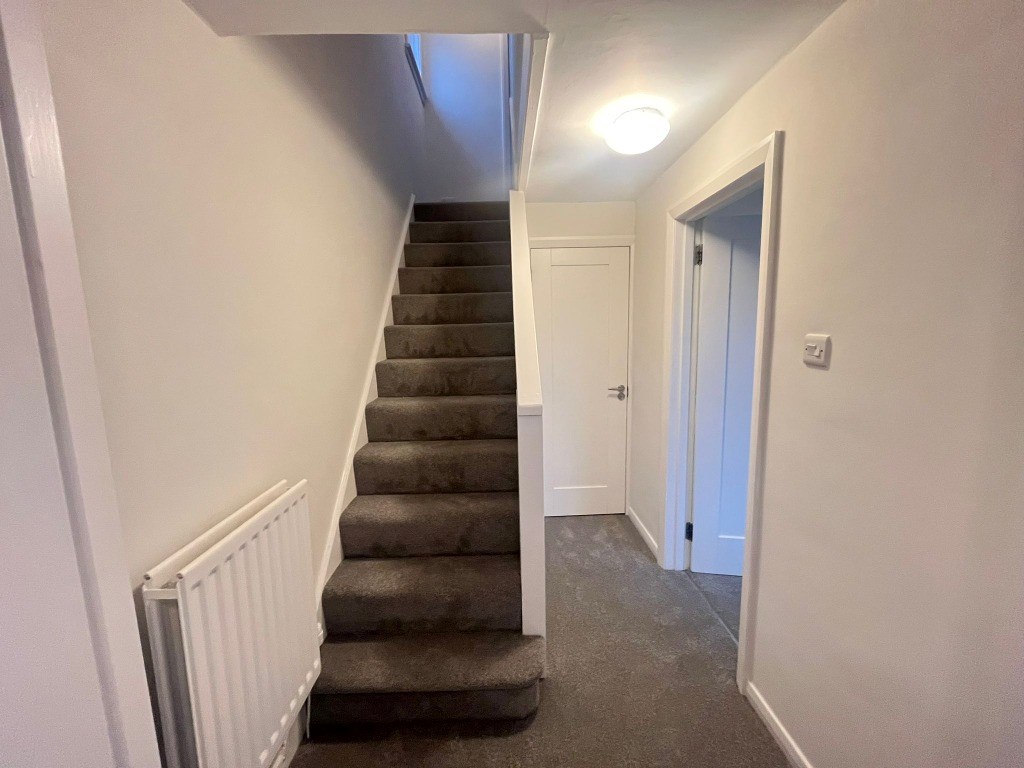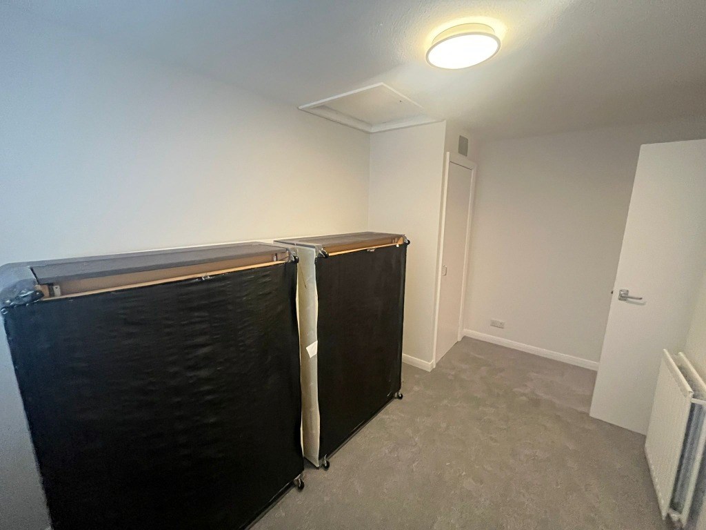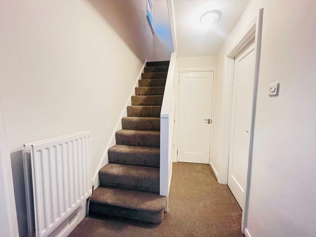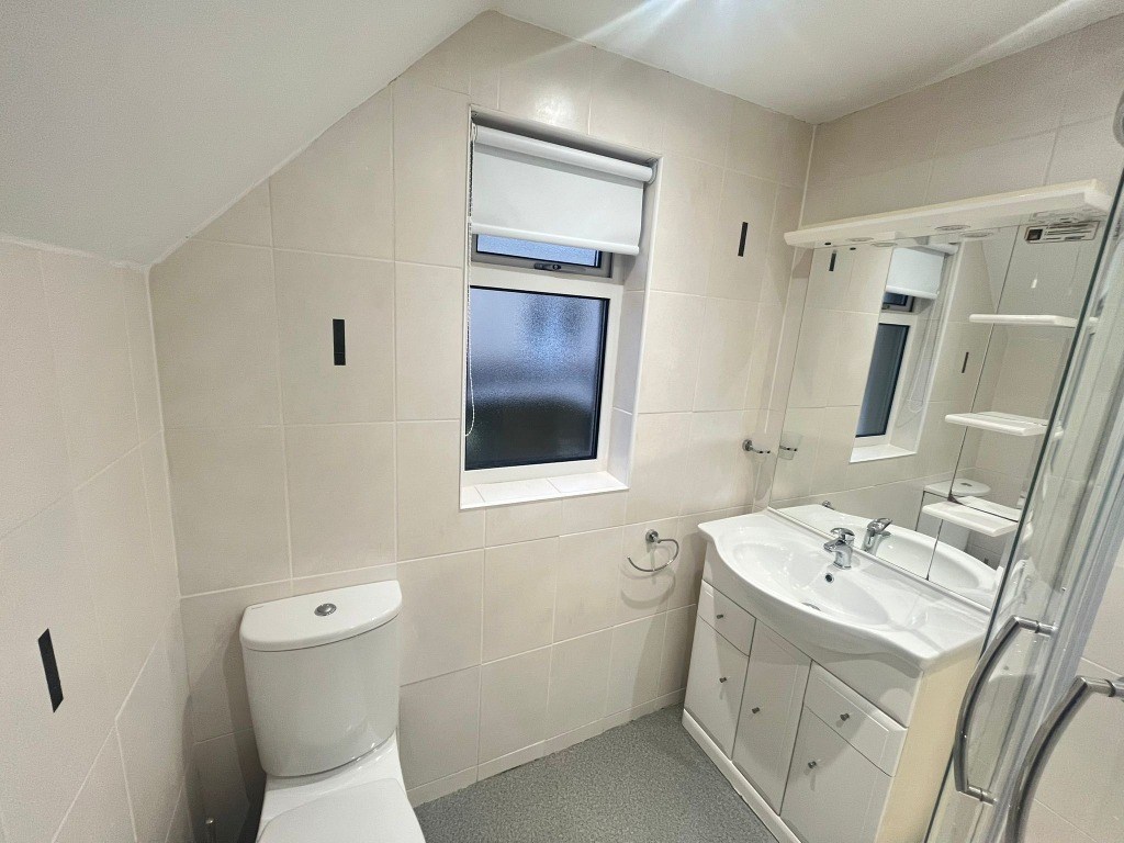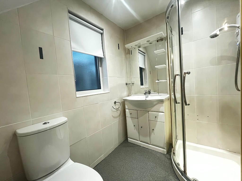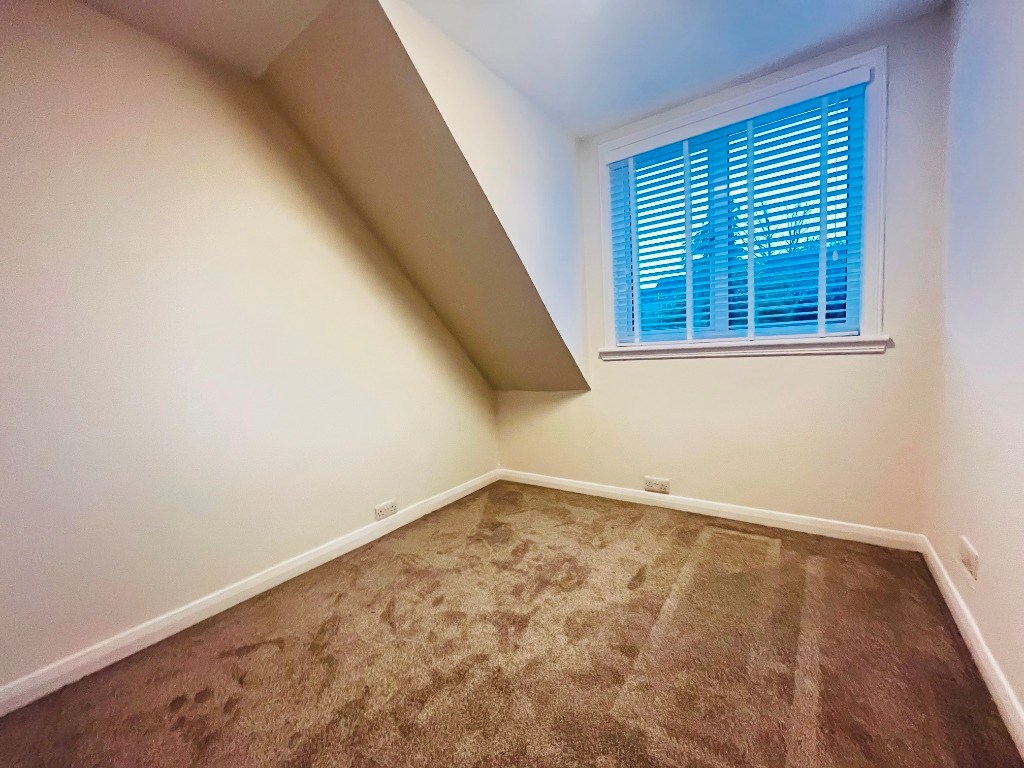 Upstairs, bedrooms one and two are well proportioned and continue the calm, neutral aesthetic, featuring plush carpeted flooring and offering ample space for freestanding furniture. A third bedroom provides a versatile single room, ideal for a child’s bedroom, home office, or study. The shower room is fitted with a stylish three-piece suite, and the property further benefits from ample storage throughout.