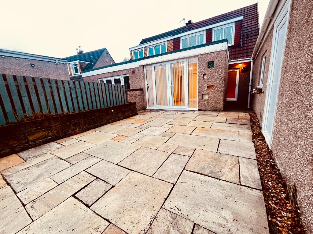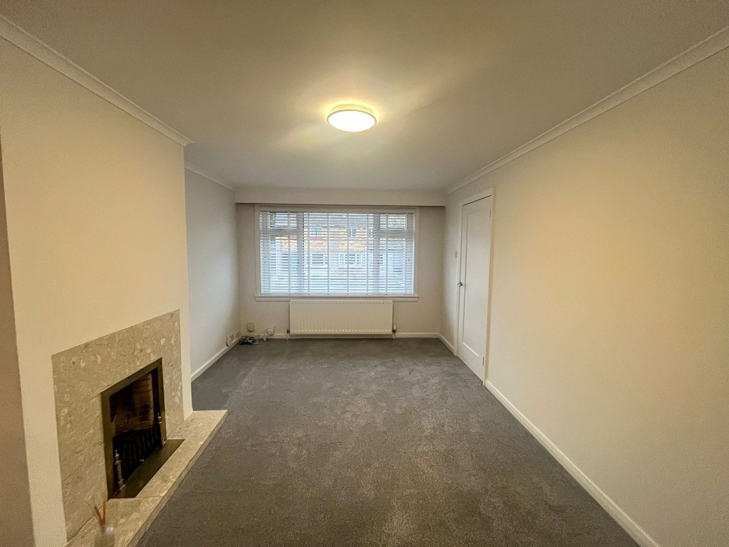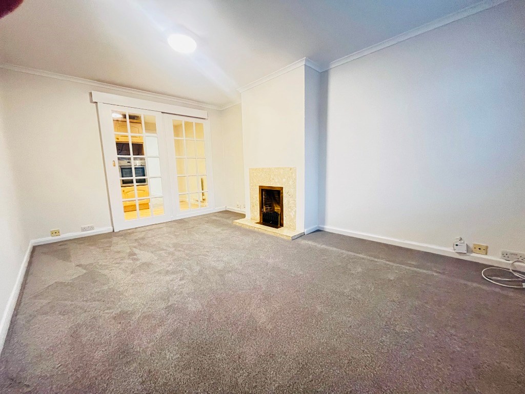 A welcoming entrance hall leads into a well-proportioned living room, featuring soft carpeted flooring, elegant neutral décor, and a feature fireplace, creating an inviting space ideal for both relaxation and entertaining. Double doors open into a thoughtfully designed kitchen with space for dining and direct access to the rear of the property. Beyond the kitchen, a further reception room benefits from french doors opening onto the garden, providing a versatile additional living, dining, or entertaining space.