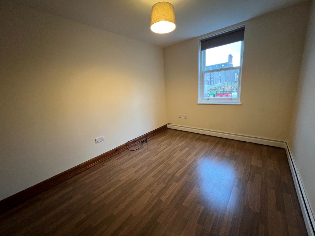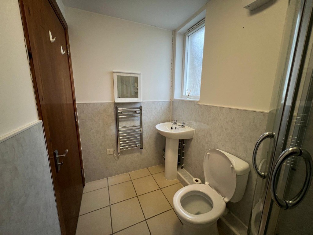 This first floor flat has an open-plan kitchen/living room, a double bedroom and a single bedroom both with fitted storage, and a fully fitted shower room.