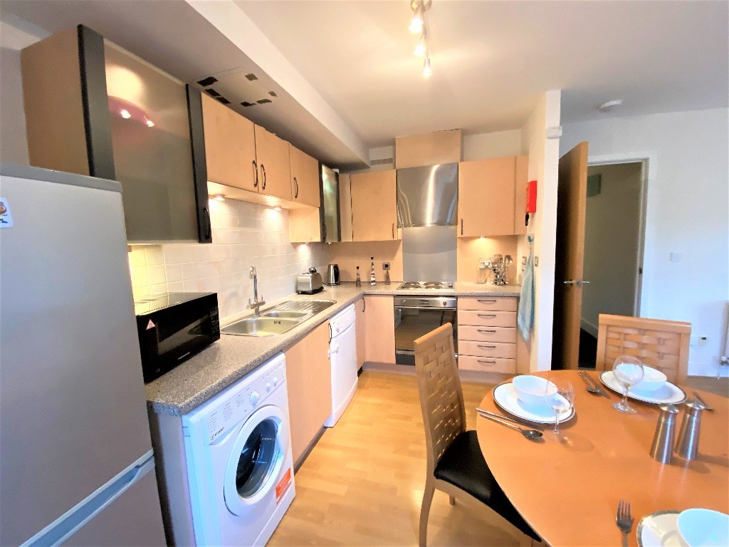 The apartment comprises two spacious double bedrooms with built-in wardrobes, one en-suite shower-room, a bright and spacious lounge/kitchen with dining area and white goods provided and a fitted bathroom with shower over the bath.