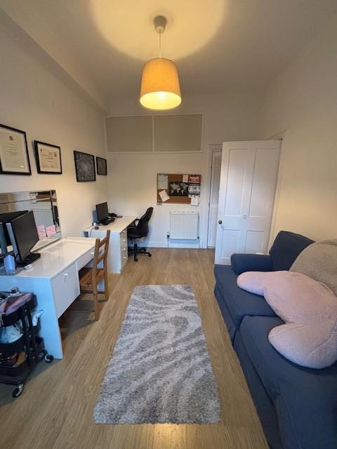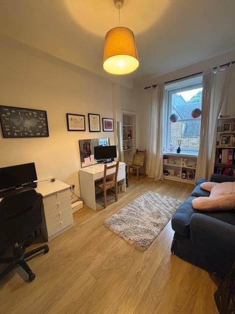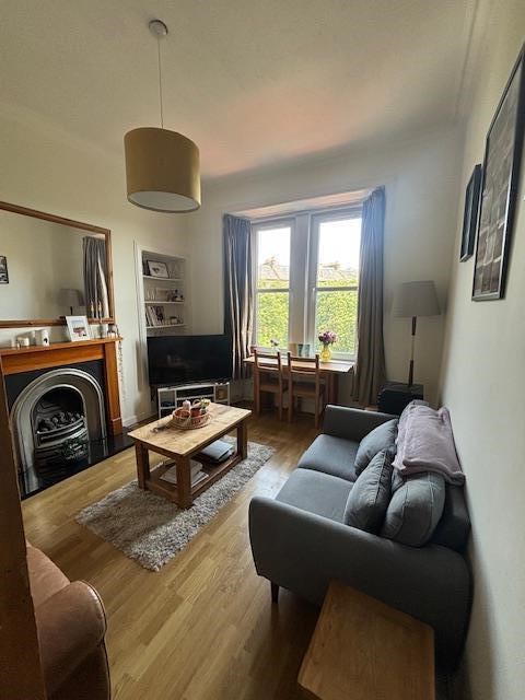 Bright and spacious furnished traditional 2 bedroom flat with lovely lounge, modern kitchen, bathroom with great shower and walk-in cupboard. Good sized bedrooms. Currently the rear double bedroom is set up as a home office with a sofa bed. Excellent storage. Warm and cheap to heat with GCH and double glazing. Second floor position overlooking Murieston park, just off Dalry Rd. Close to all amenities, just a 10 minute walk to Haymarket, 5 mins Fountain Park, 2 mins Lidl, 1 min to main bus route. No HMO. Set up to suit a couple. Preference for long term tenants. No smoking and no pets.