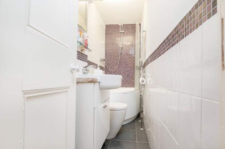 ~Attractive, tiled bathroom with shower over bath and stylish three-piece suite
