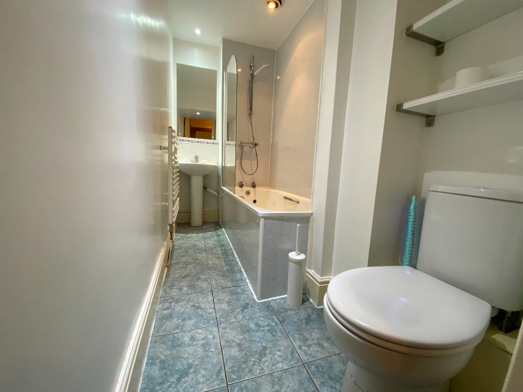 - Bathroom with shower over bath.