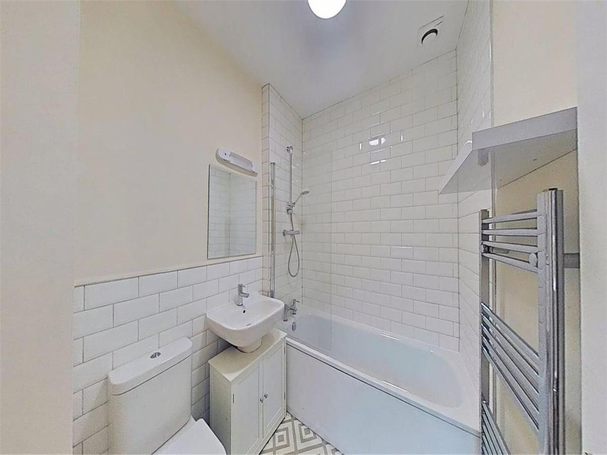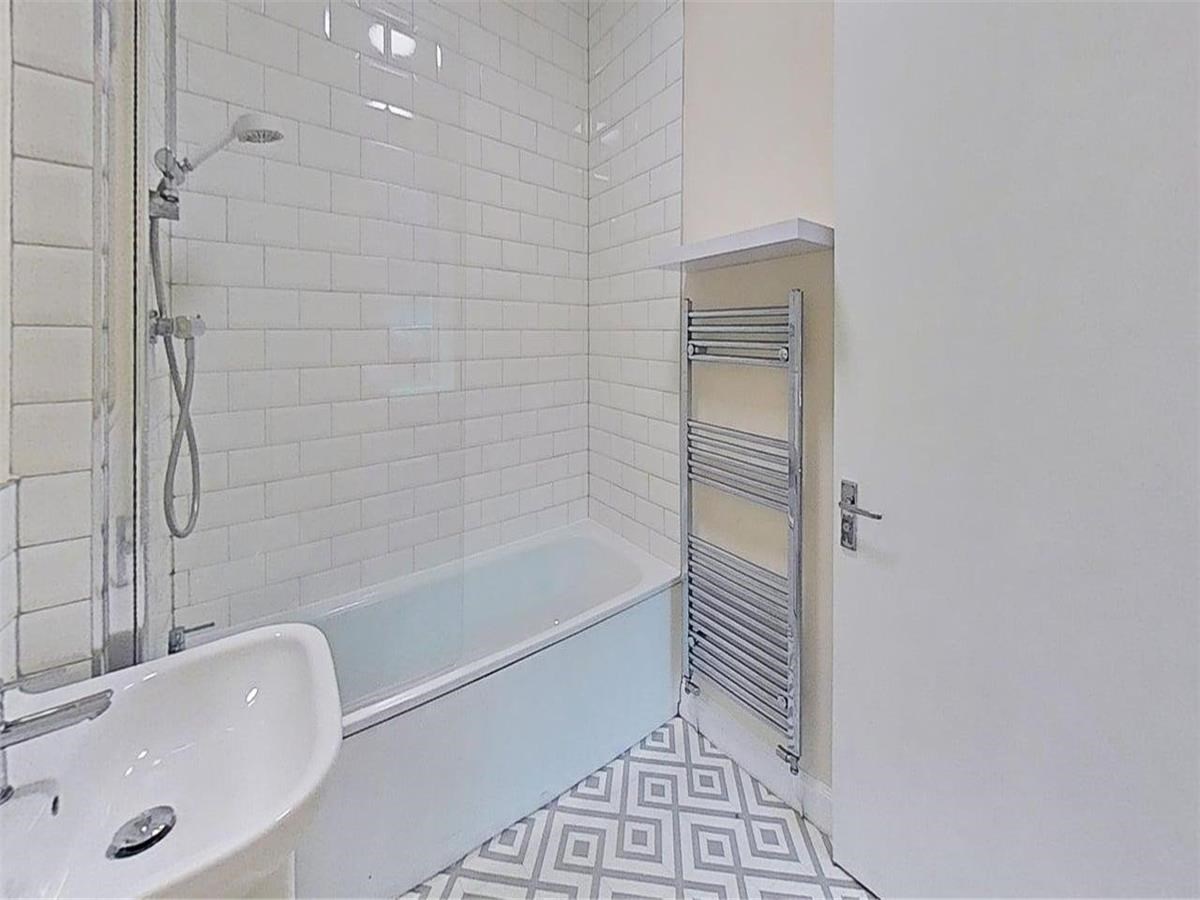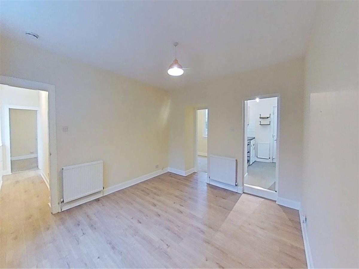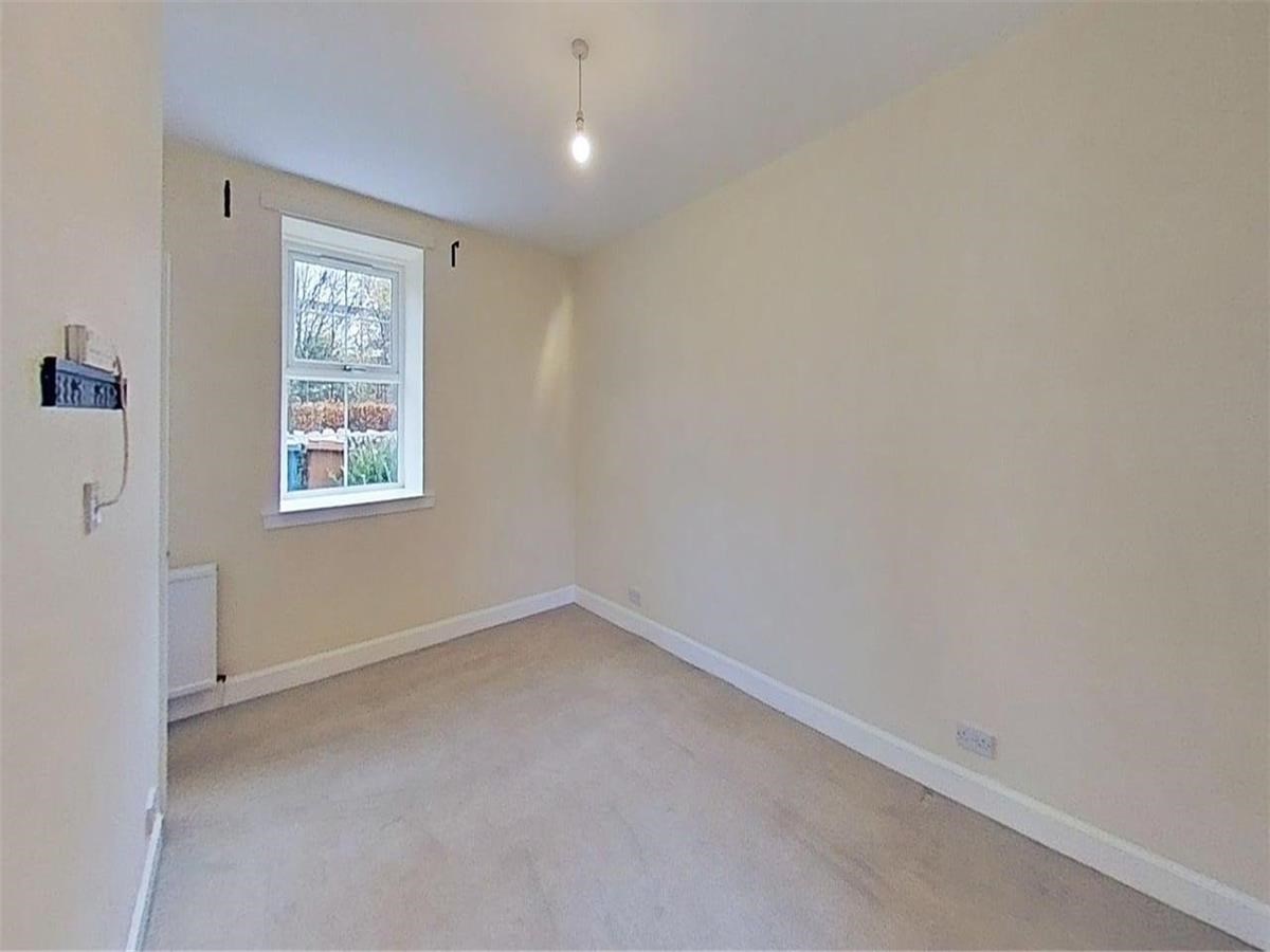 Offered unfurnished, the property features a bright, generously sized lounge with neutral decor and stylish wood-effect flooring, a theme carried throughout the home. The lounge leads to the first double bedroom and to the modern kitchen, fitted with shaker-style wall and base units, white brick-effect splashback tiles, and appliances including an electric oven, hob, washing machine, fridge, and freezer. From here, doors open to the private rear garden. The home further benefits from two additional double bedrooms, one with a large built-in storage cupboard, and a contemporary family bathroom featuring white brick-effect tiles, a vanity unit, and a heated towel rail.