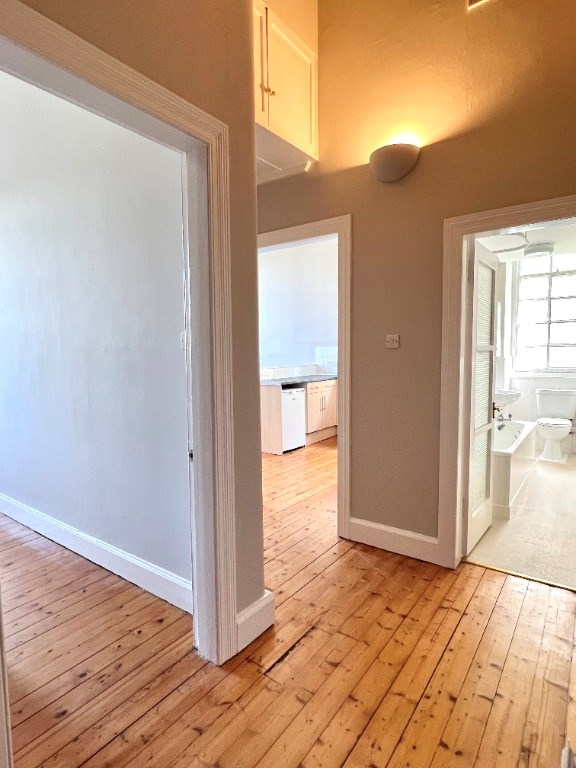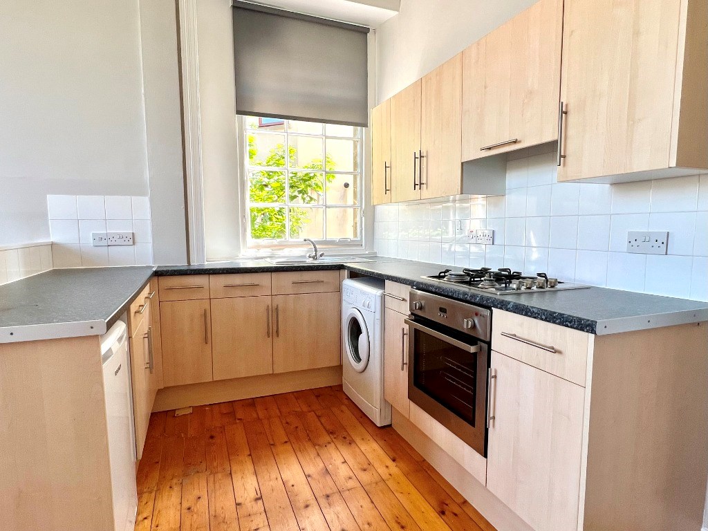 Newly painted, the accommodation offers a spacious open plan lounge with dining recess and well equipped kitchen. The kitchen includes an oven, hob, fridge and washing machine.
