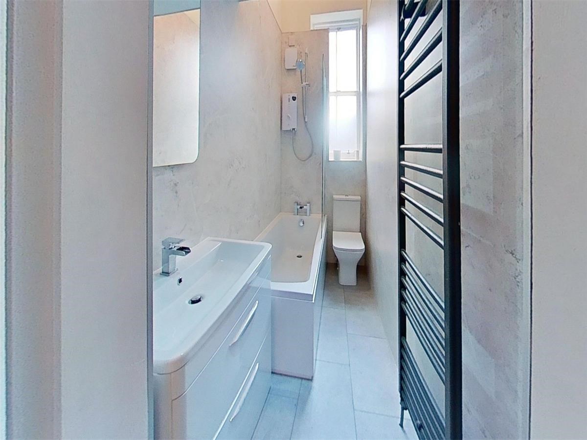 Two double bedrooms provide flexible accommodation, complemented by a contemporary bathroom finished with a crisp white suite and vanity storage.