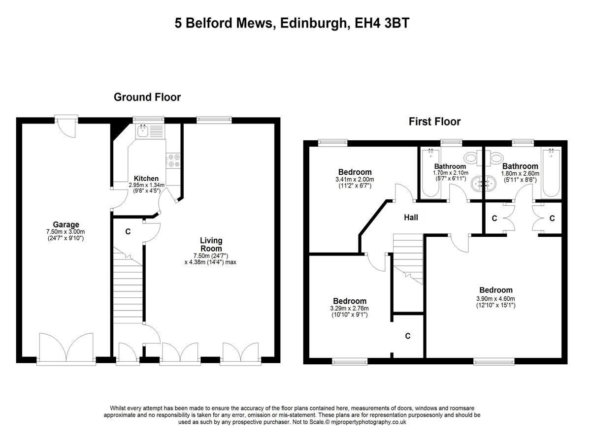 Charming unfurnished mews property over 2 levels situated in the popular development of Belford Mews which forms part of the historic Dean Village. Comprising: Lounge with dining area, fully fitted kitchen leading to garage, 3 double bedrooms (master en-suite) and bathroom with shower. Original sanded floors. GCH. Residents permit parking & garage.