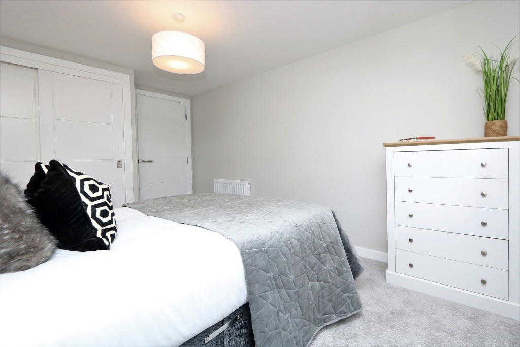 Internally the property comprises of a welcoming hallway with ample storage, a bright spacious lounge that is open plan to a contemporary fully fitted kitchen with integrated appliances. There are two well proportioned double bedrooms, including the master boasting a superb en-suite shower room and all with fitted wardrobes and additional Study/Reception Room.