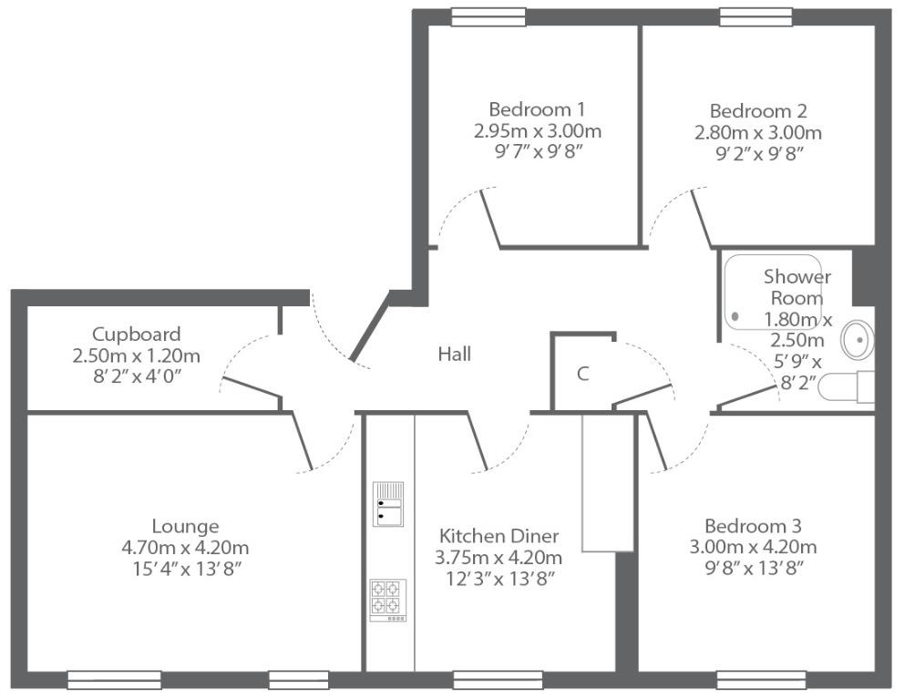 This property is situated on the top floor within a traditional tenement building and comprises of a welcoming hallway with 2 storage cupboards and which leads to all rooms. There are three double bedrooms all fully furnished, a large lounge, fully equipped kitchen with dining area with ample storage space and modern appliances including washing machine, microwave, fridge freezer, gas hob and electric double oven. Finally there is an internal shower room with white ceramics and a walk-in shower cubicle.