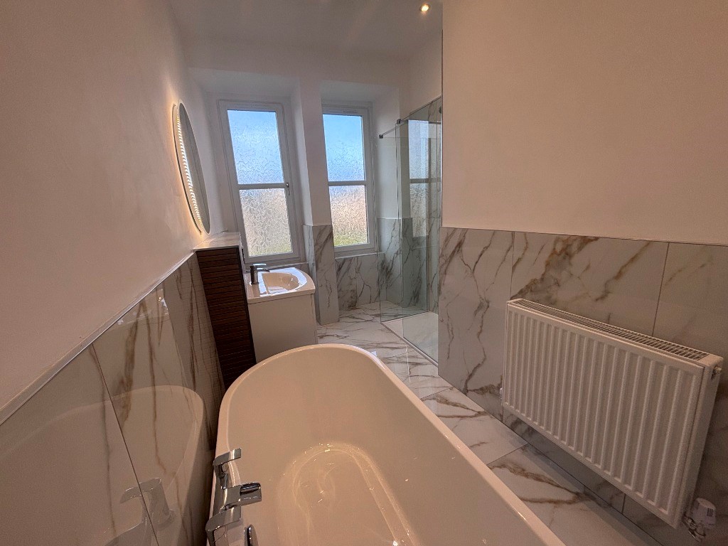 Located in the heart of "The Drives" of Dennistoun, this flat has excellent local amenities and transport links. Situated on the top floor, this unfurnished flat comprises: welcoming Reception Hall, impressive Lounge with media wall/feature fireplace, modern open plan Kitchen, 2 good sized, double bedrooms and stylish Bathroom with free standing bath and walk-in shower.
