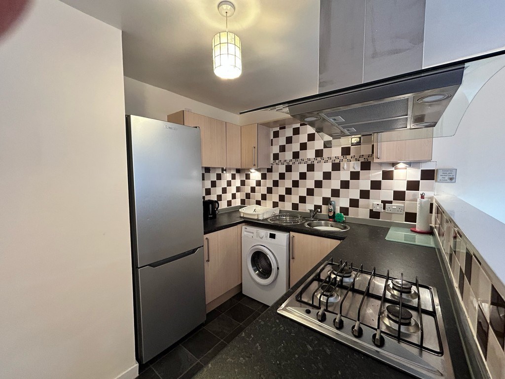 The furnished accommodation internally comprises an entrance hallway leading to a large open plan lounge/kitchen, two double bedrooms, tiled bathroom with shower and ensuite shower room. The property further benefits from gas central heating, modern decor, secure door entry system and off street parking facilities.
