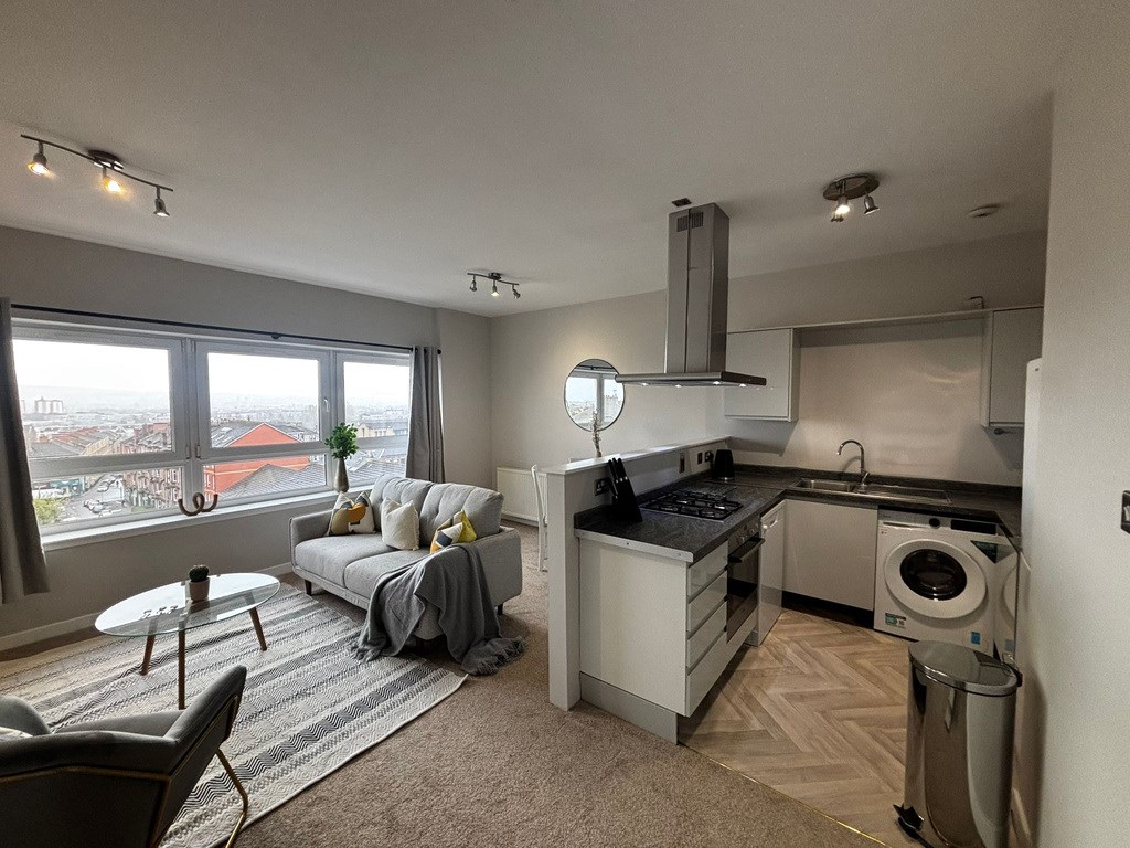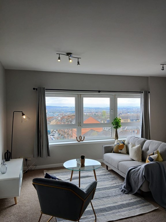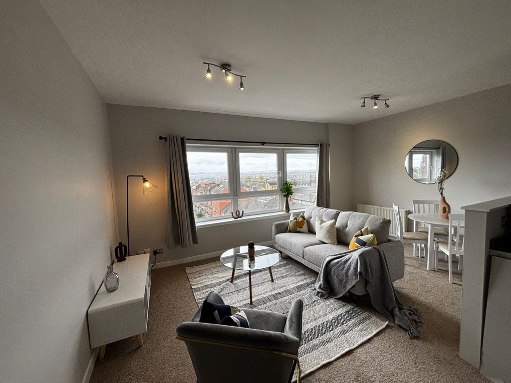 Situated in a popular residential area of Glasgow’s East End, this well-presented two-bedroom flat offers comfortable and modern living ideal for professionals or a couples.Positioned on the fifth floor, the property enjoys excellent natural light and elevated outlooks, creating a bright and welcoming living environment. The accommodation comprises a spacious open-plan lounge and kitchen, with ample room for dining and modern fittings throughout.There are two well-proportioned double bedrooms, including a principal bedroom benefiting from a private en-suite shower room, while a separate modern family bathroom completes the accommodation.Further features include gas central heating, secure door entry, lift access and a well-maintained communal close.Located in the vibrant Dennistoun district, the property is perfectly placed for a wide range of local amenities including shops, cafés, and recreational facilities, as well as excellent public transport links with easy access to Glasgow City Centre and nearby universities.
