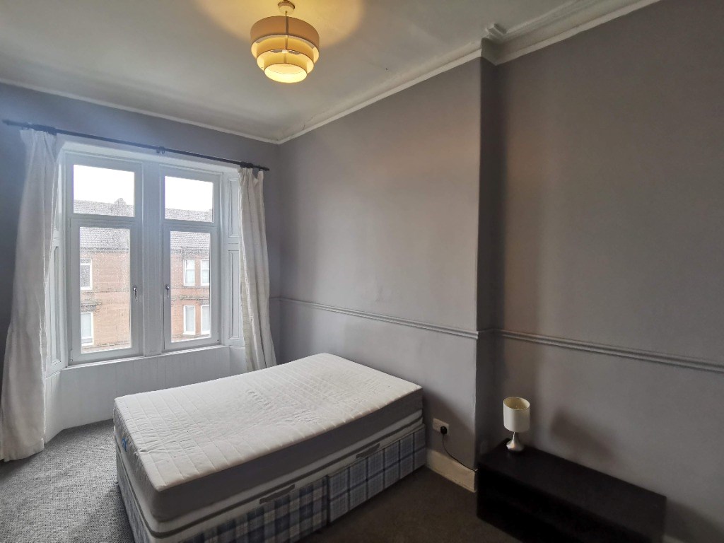 One Stop Properties are pleased to present this good-sized, corner flat in the heart of Dennistoun. Situated on the 3rd floor, this furnished flat comprises: Entrance Hall, Corner Lounge with hard wood floor and feature fireplace, modern fitted Kitchen with dining area, 2 Double Bedrooms & Bathroom with shower. GCH, Double Glazing, Security Entry and on-street parking.
