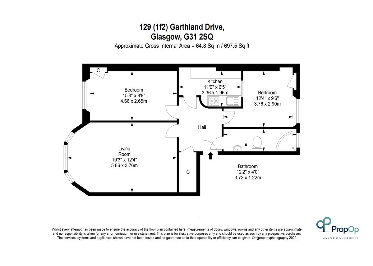 PropOp are delighted to present to the market, this traditional sandstone, first floor flat, set within the popular and much sought-after address of Garthland Drive, nestled in the heart of Dennistoun. The property on offer comprises welcoming entrance hallway, bright spacious bay-windowed lounge, modern re-fitted galley kitchen, two good sized bedrooms and modern family bathroom with corner bath. The property further benefits from gas central heating, double glazing and secure door entry system.The property is centrally positioned within the highly popular Dennistoun district and sits approximately 1.25 miles east of Glasgow City Centre. Locally, there is schooling at both primary and secondary levels, recreational pursuits including a public swimming pool, gymnasium, park, library and much more. Shopping can be found within walking distance at Tesco and Asda Superstores at the Forge retail park. A range of restaurants, cafes and bars are also available nearby. Public transport includes bus and rail links to Glasgow and Edinburgh City Centres together with excellent access to the central belt motorway network.