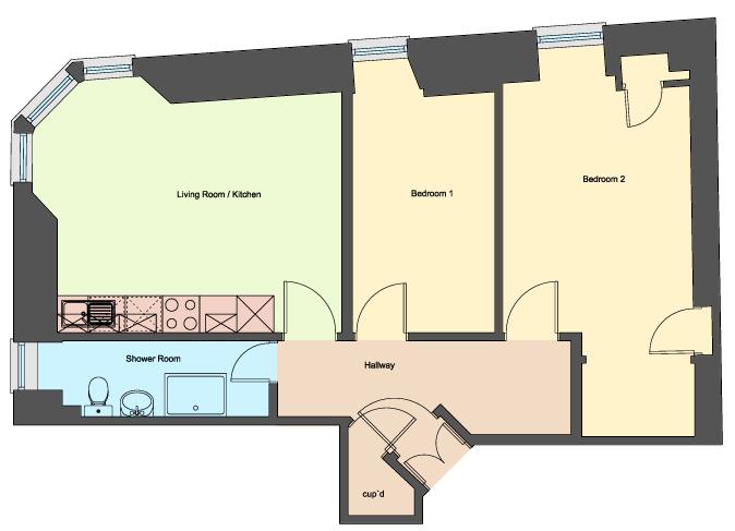 This property is offered fully furnished and comprises entrance hallway, bright open plan lounge/kitchen, two spacious double bedrooms and family bathroom complete with shower.