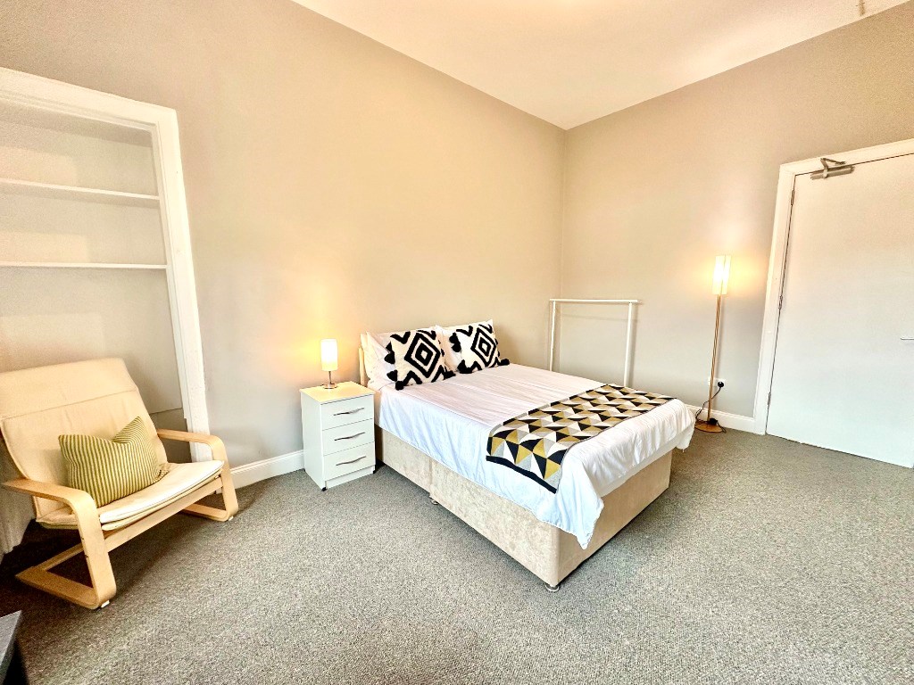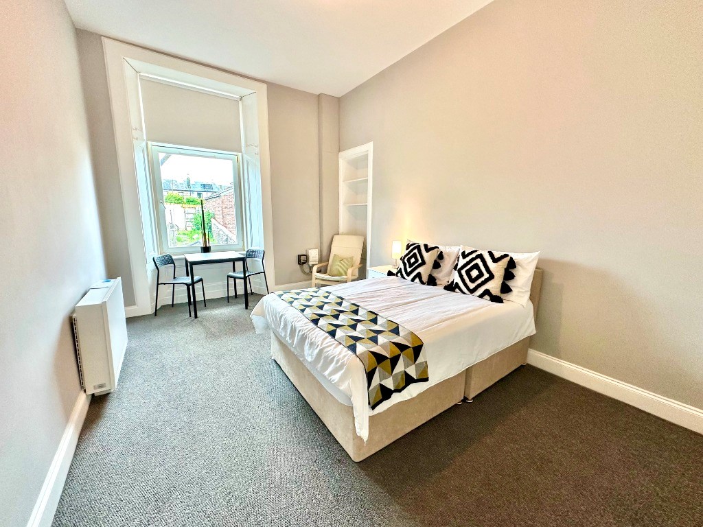 Newly refurbished, luxurious furnished bedsit apartment with shared kitchen/shower facilities within a traditional building located in Dennistoun, Glasgow.