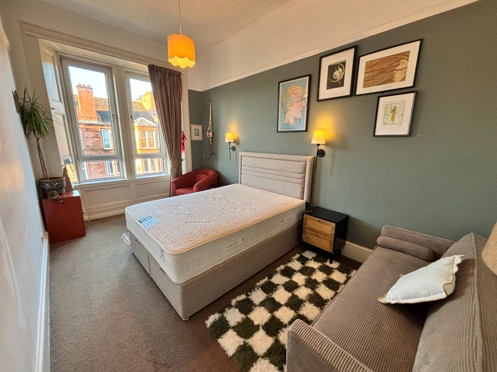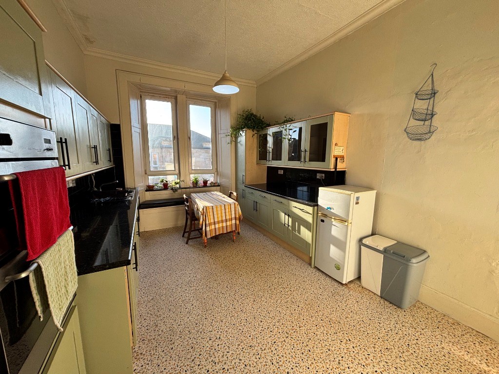 One Stop Properties are delighted to present this HUGE corner flat in the heart of Dennistoun. Situated on the third floor, this furnished flat comprises: large and welcoming reception hall with parquet flooring, large corner lounge with dual aspect windows and feature fireplace, HUGE dining sized kitchen, 2 good sized double bedrooms (one with feature fireplace), stylish bathroom with shower and lots of storage. The property has gas central heating, double glazing and security entrance.